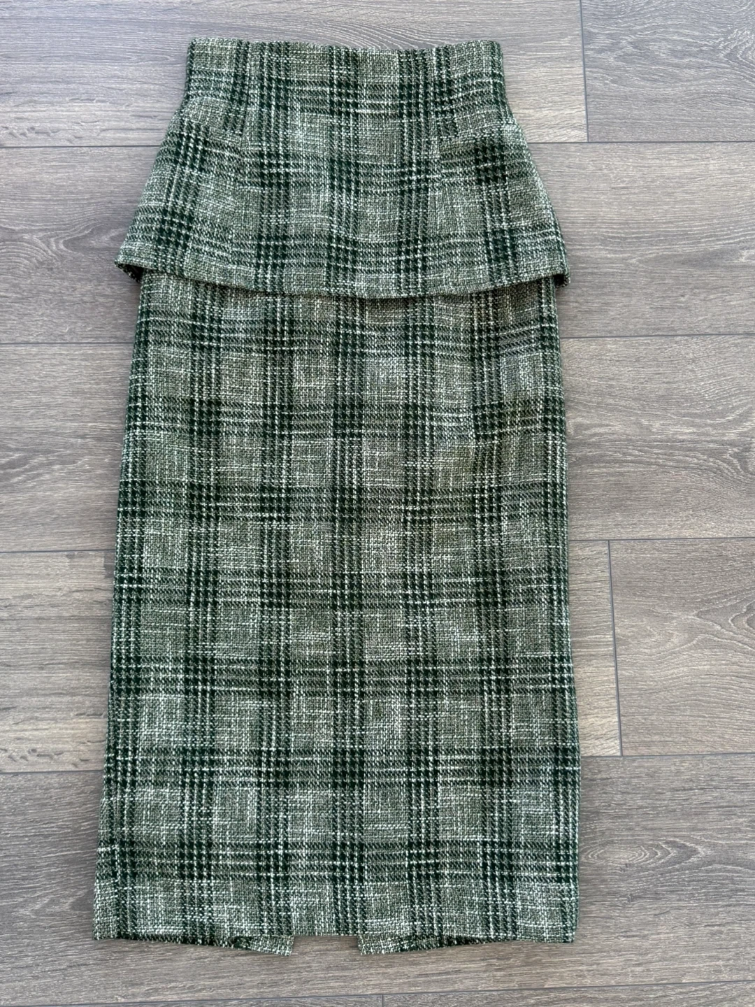 Selling a stylish FRAY I.D plaid pencil skirt. It's a size 0 and made with a blend of acrylic, cotton, and polyester for the outer material, and cotton and polyester for the lining. Perfect for adding a touch of sophistication to your wardrobe!