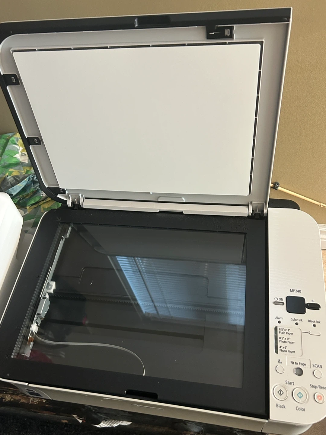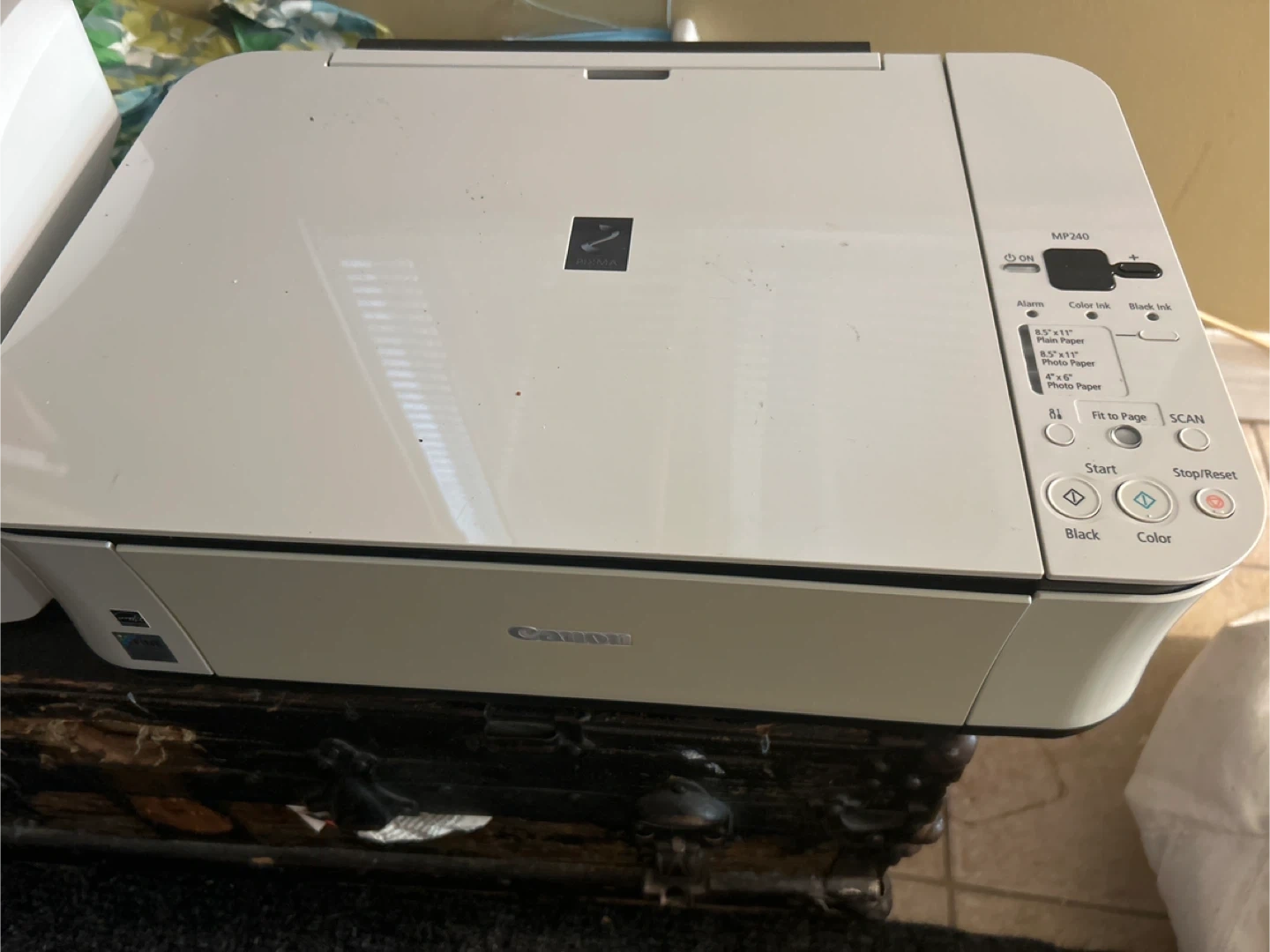 93Selling a Canon MP240 printer. It prints on 8.5"x11" plain paper, 8.5"x11" photo paper, and 4"x6" photo paper. Great for home or small office use! Never used, but no ink or cables included!