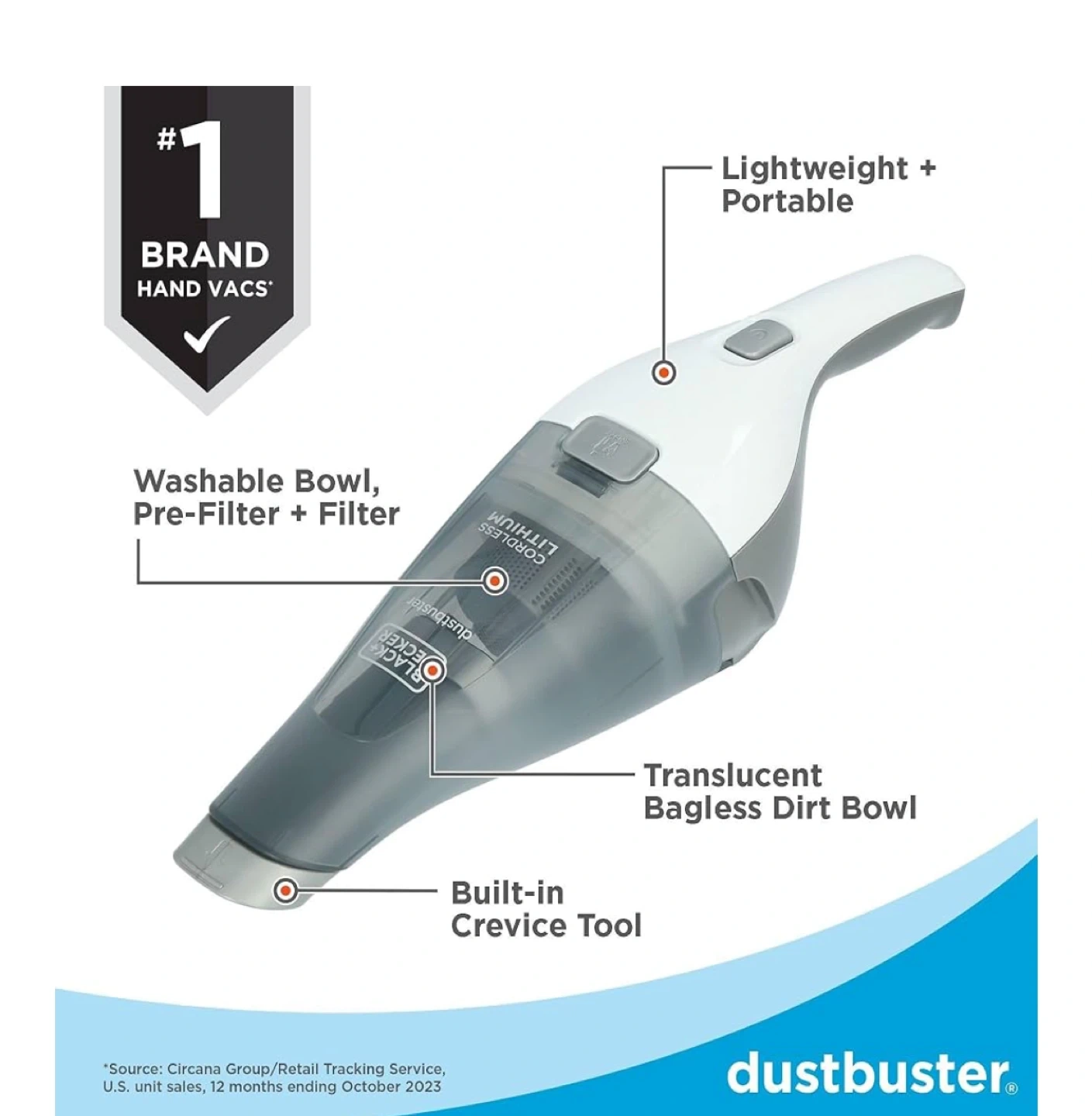 Looking to sell my Black+Decker Dustbuster cordless handheld vacuum. It's lightweight and portable, perfect for quick cleanups around the house or in the car.