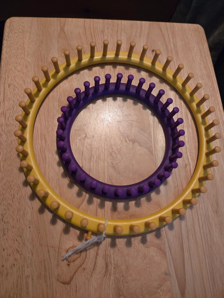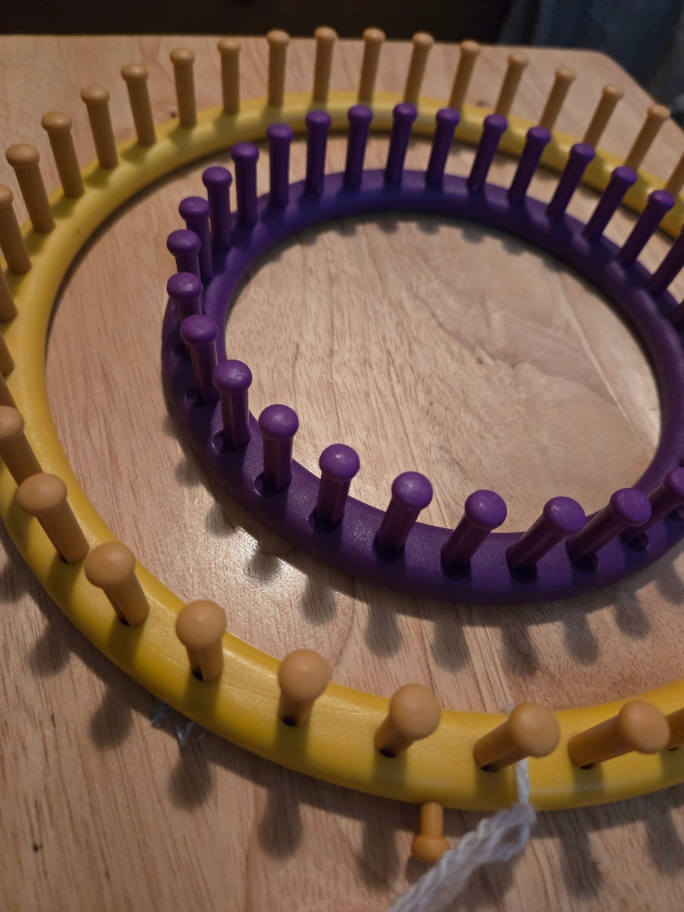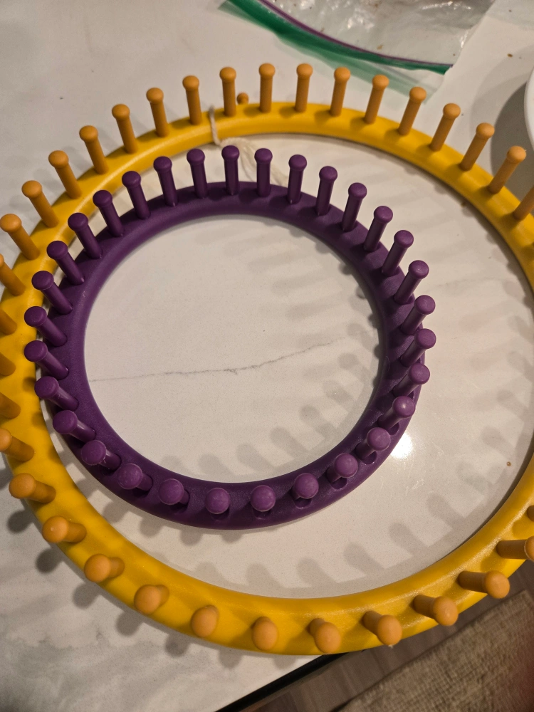 Two knitting looms for sale! One is yellow and the other is purple. Great for making hats, scarves, and other projects. Get creative and start knitting