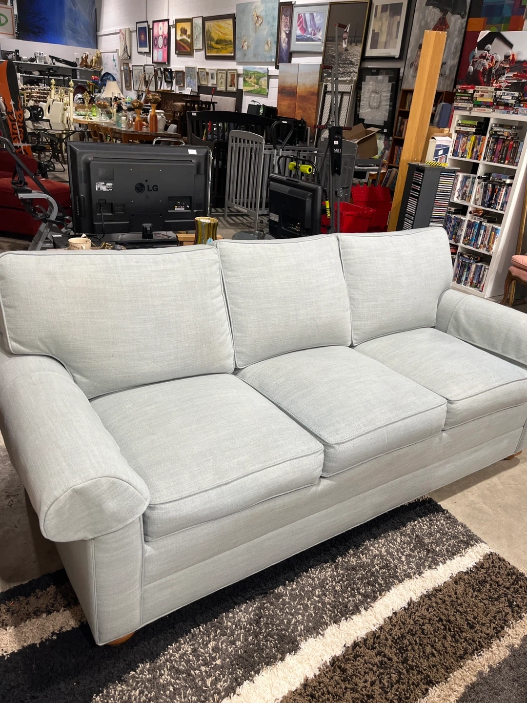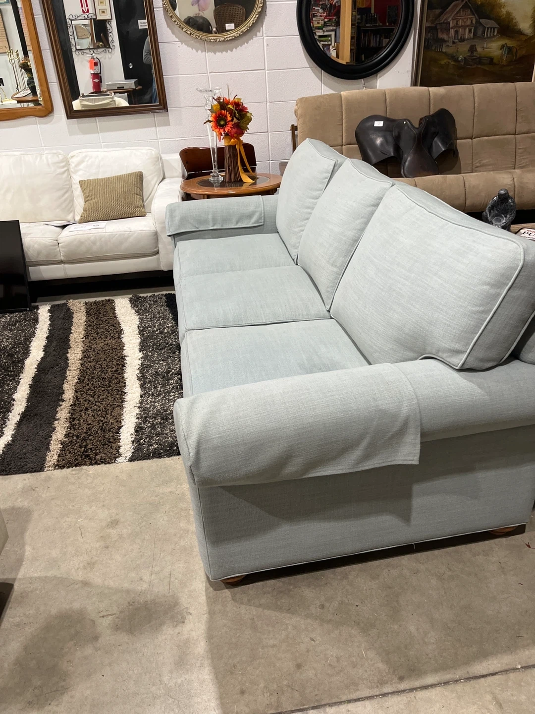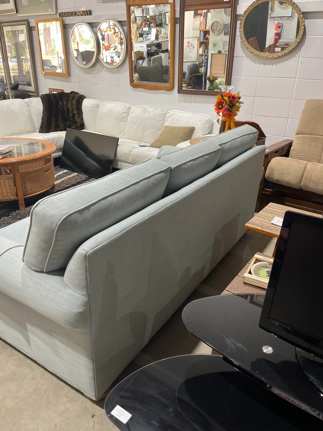 Selling a comfy light mint sofa. It's in good shape and would look lovely in any living room or den. 87x37x37” Visit Rebound Centre Thrift Store 6215 3rd St SE, Unit C11 Open daily 10 AM – 5 PM Local pickup available See more at Reboundcentre.com