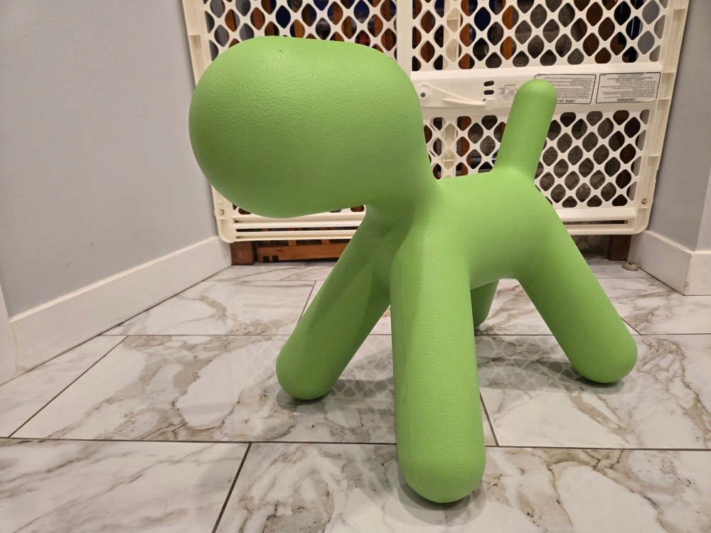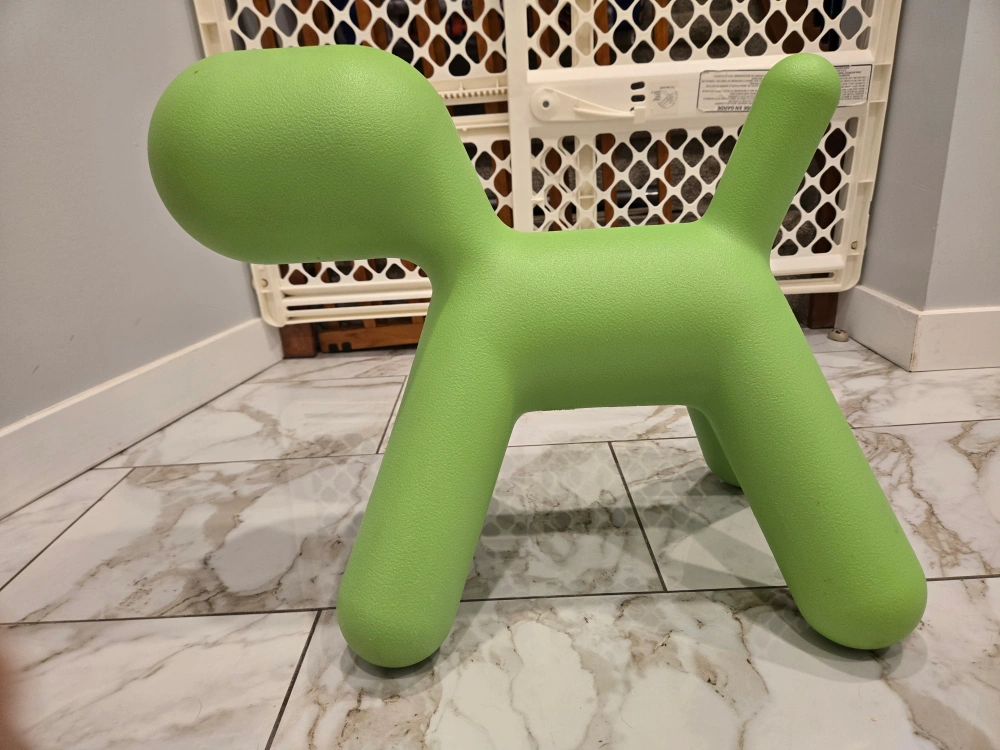 This is a Magis Puppy in green! It's a fun and quirky piece of furniture that can be used as a seat or a decorative object. Perfect for a kid's room or any modern space