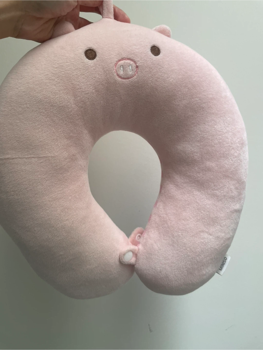 67Super cute Miniso neck pillow in a light pink pig design! It's soft and perfect for travel or just relaxing at home. The pillow is in great condition and ready for a new owner