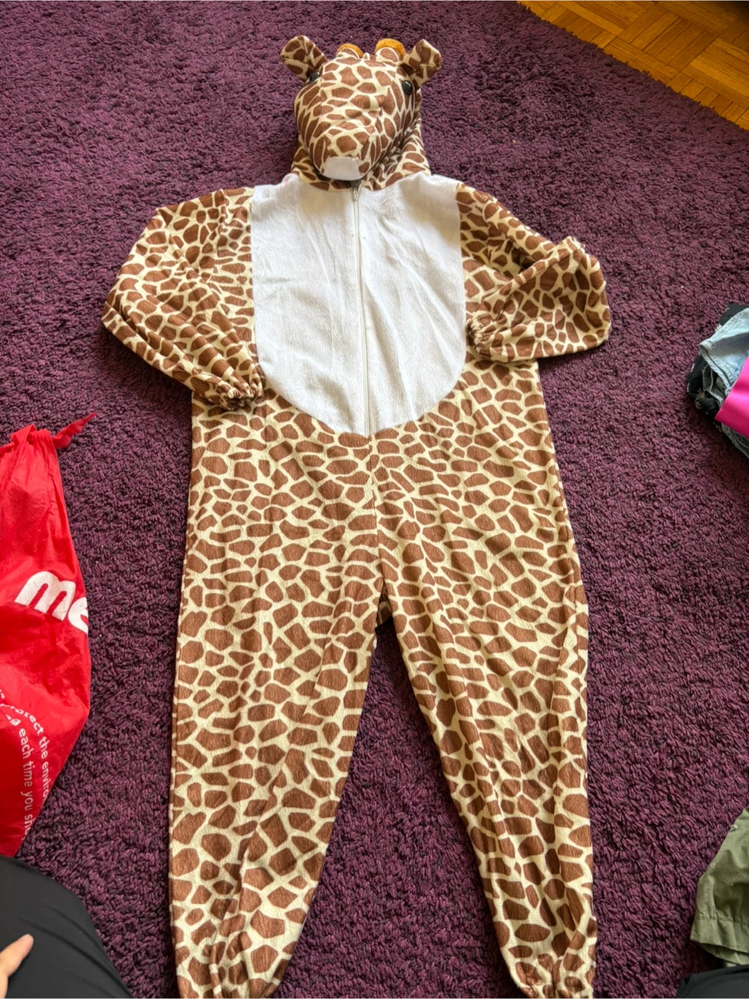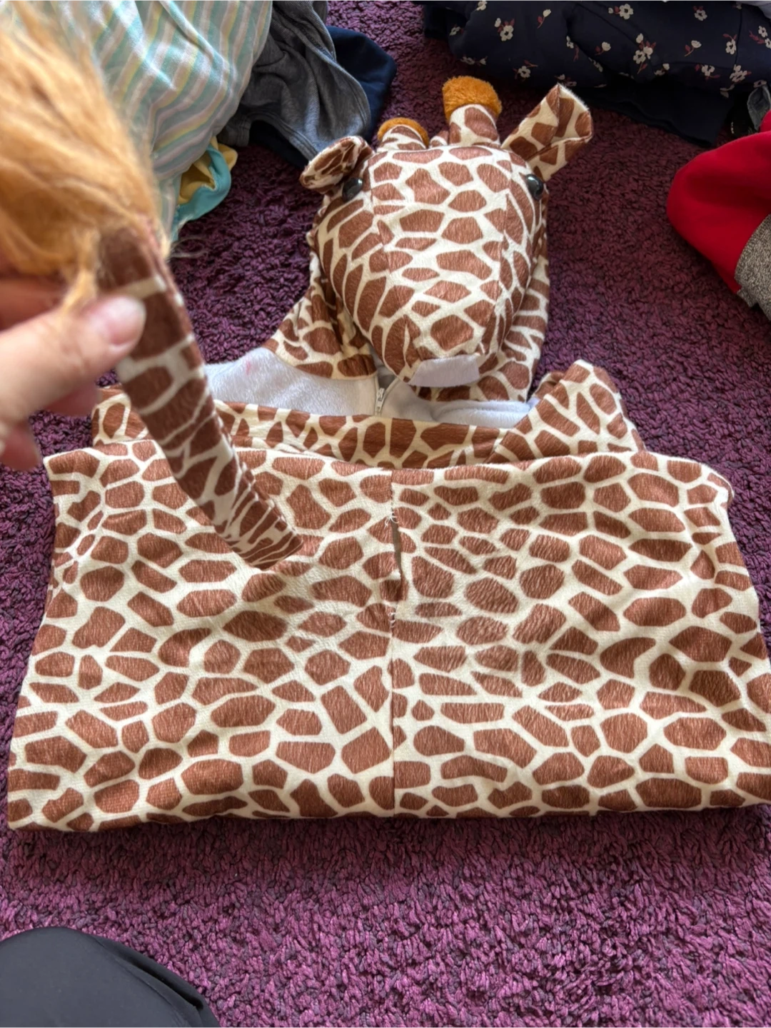 A cute giraffe costume for your little one! It's in great condition and ready for a new home. Perfect for dress-up or Halloween!
