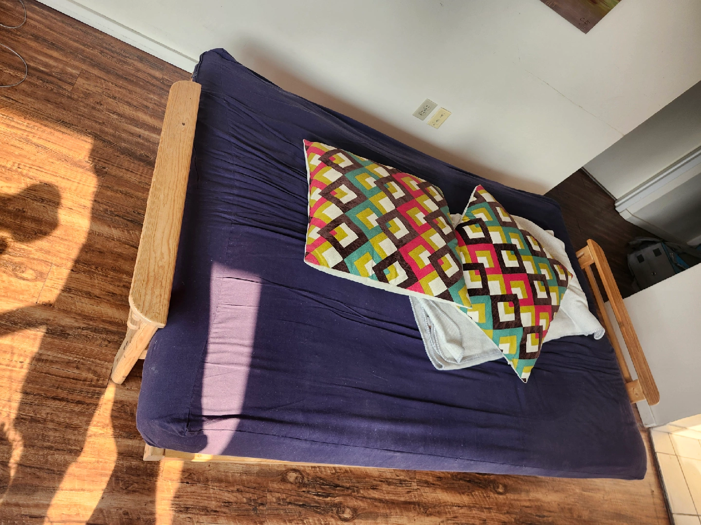 -Futon slides into couch and bed positions easily, and can be done by 1 person.