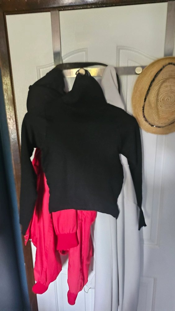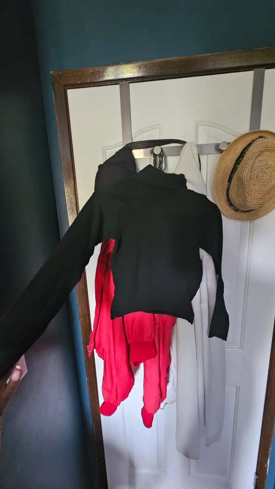 Willing to trade a cozy black turtleneck sweater, that wasn't wearing, due to of the size differences. It's in great condition and perfect for layering during the colder months, as they come. The material feels soft and comfortable, making it a great addition to your wardrobe.