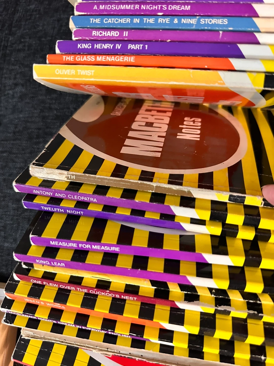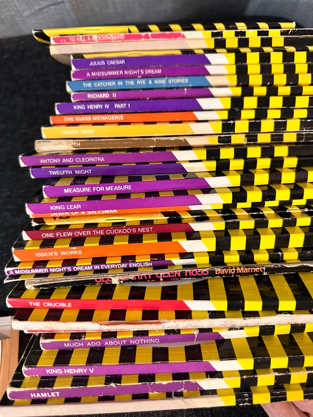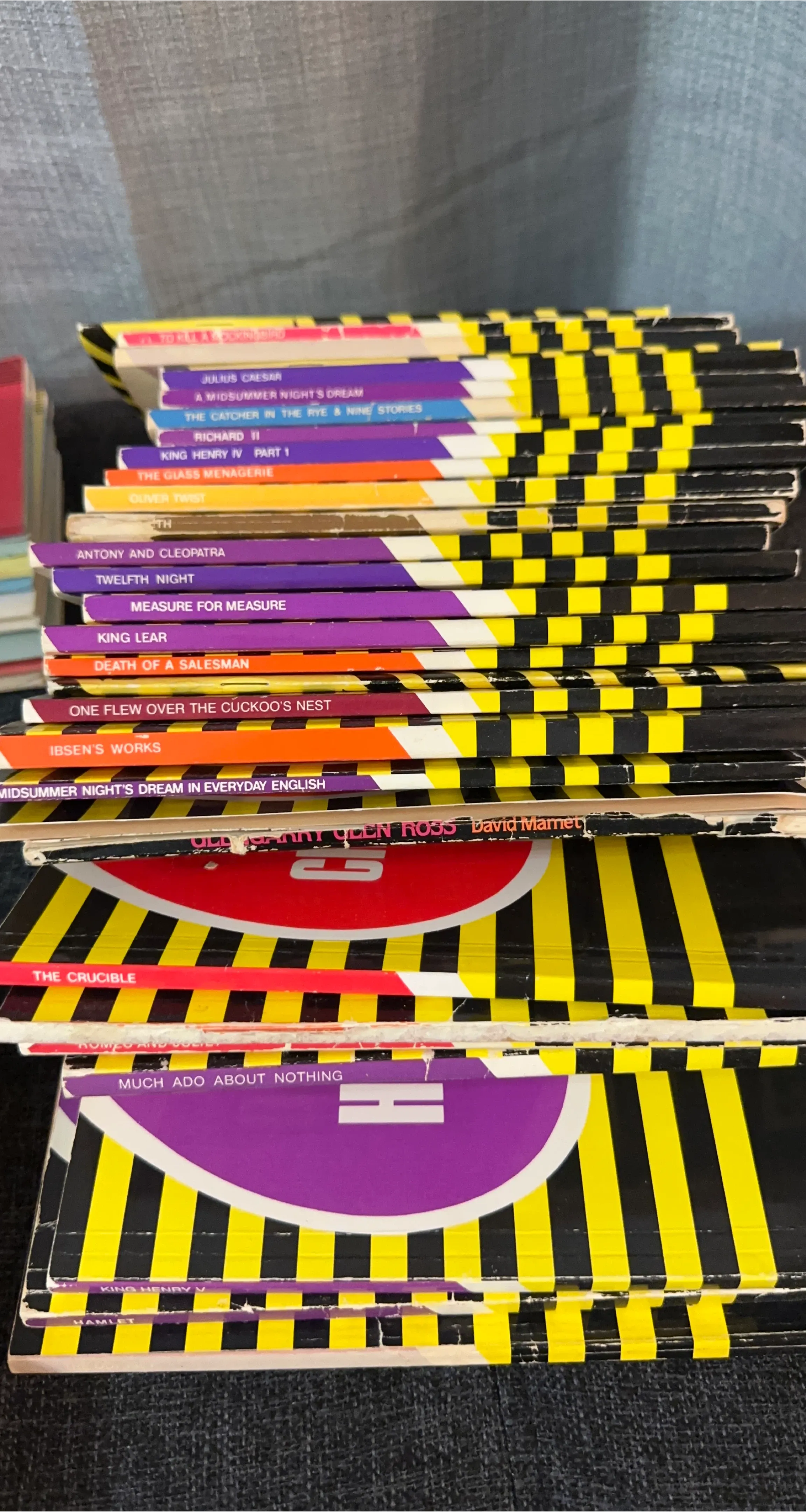 Selling a collection of assorted plays and literature books. Titles include Julius Caesar, A Midsummer Night's Dream, The Catcher in the Rye & Nine Stories, Richard II, King Henry IV Part 1, The Glass Menagerie, Oliver Twist, Antony and Cleopatra, Twelfth Night, Measure for Measure, King Lear, Death of a Salesman, One Flew Over the Cuckoo's Nest, Ibsen's Works, A Midsummer Night's Dream in Everyday English, The Crucible, and Much Ado About Nothing