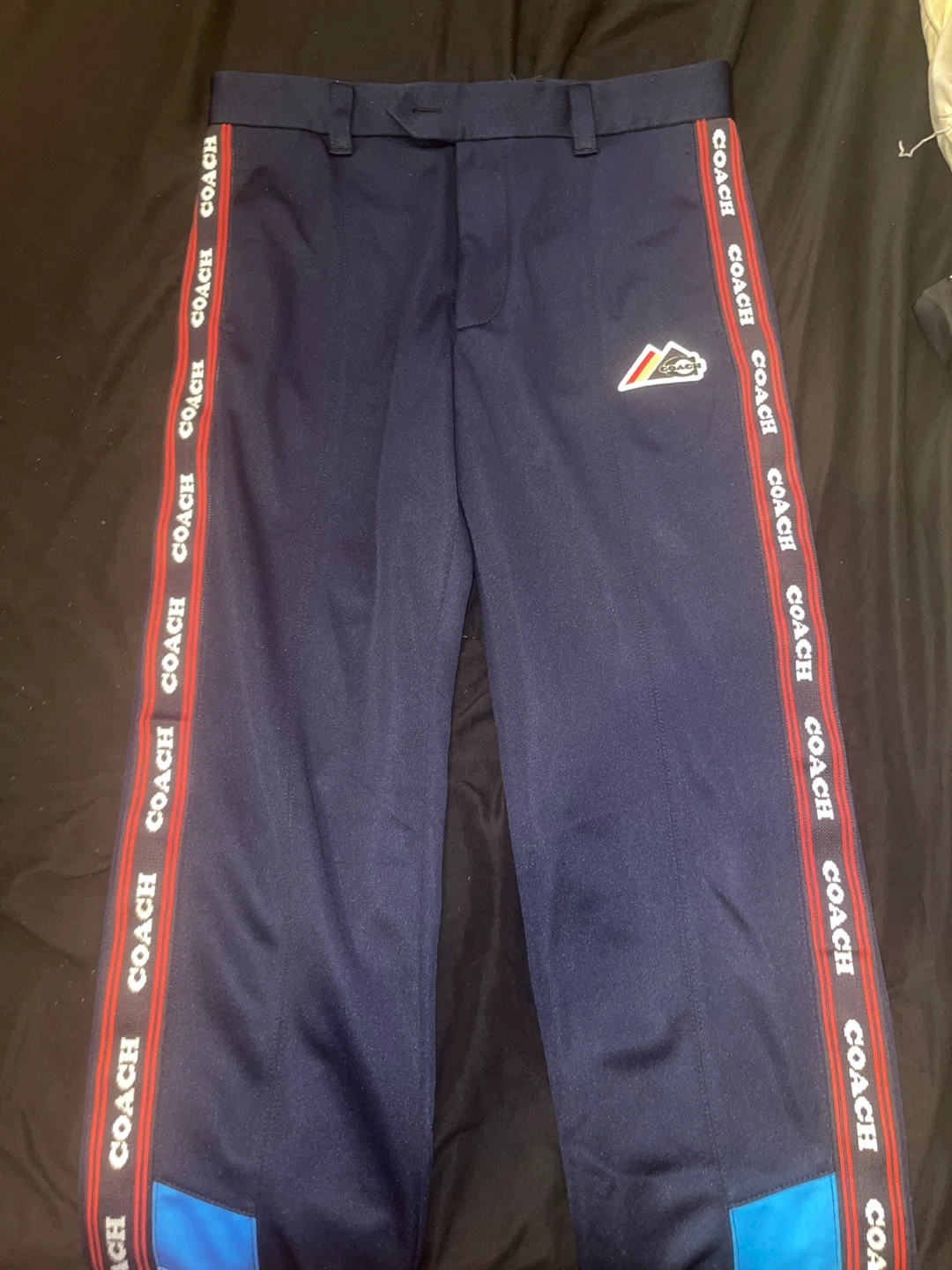 Selling a pair of Coach track pants in navy blue. These pants feature the Coach logo down the sides and a Coach mountain logo on the front. Great for a sporty, stylish look! Brand New 10/10 Condition. Message for more details Size: Large