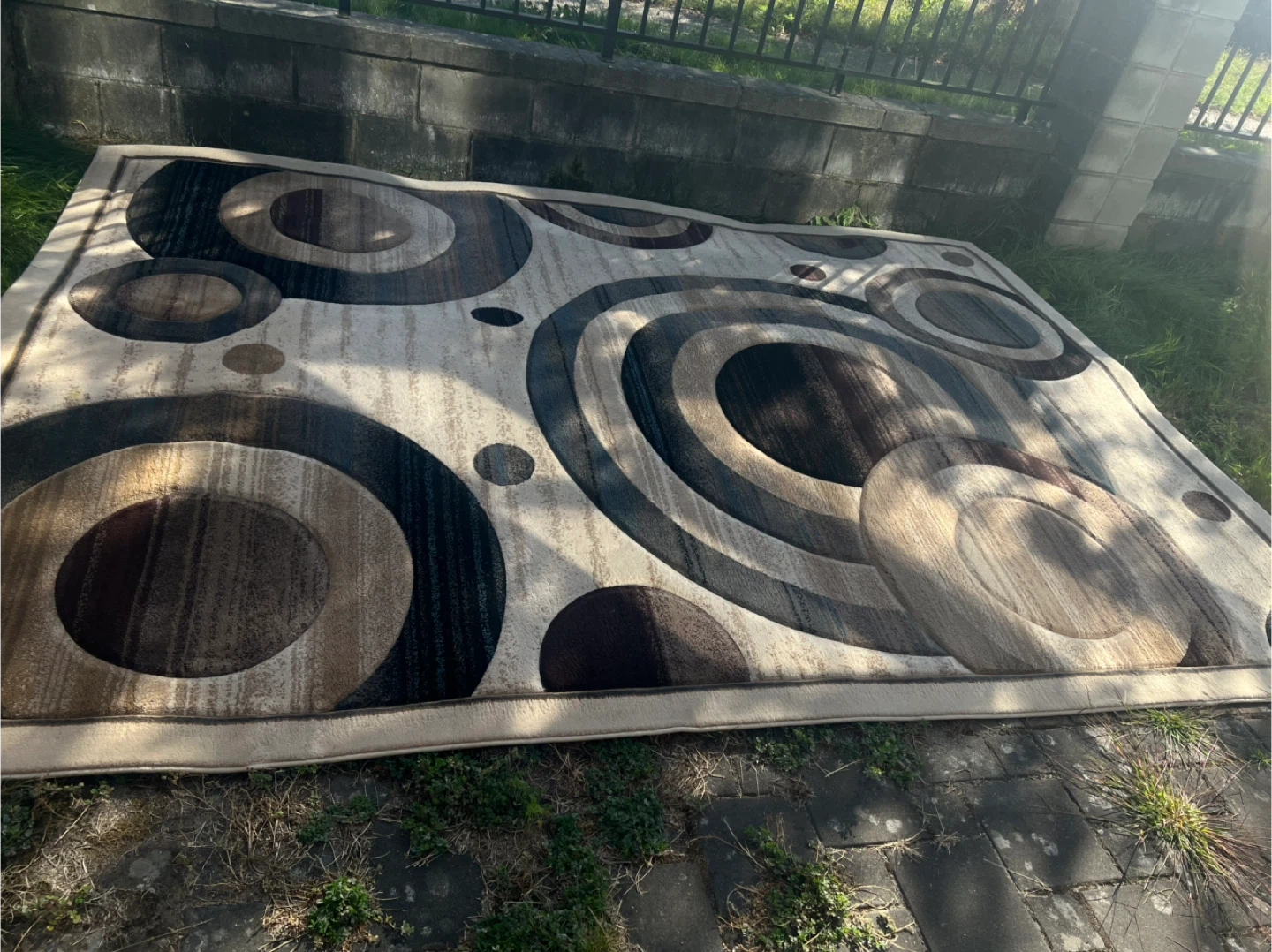 Stylish large area rug perfect for living room, bedroom, or dining space.Gently used and in good condition.