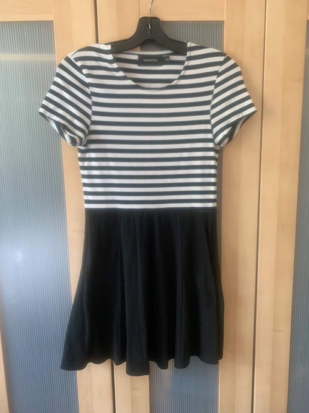 Selling a cute MINKPINK dress! It features a striped top and a solid black bottom. It's a size small and in great condition! Pick up at Eglinton Ave east at Bayview.