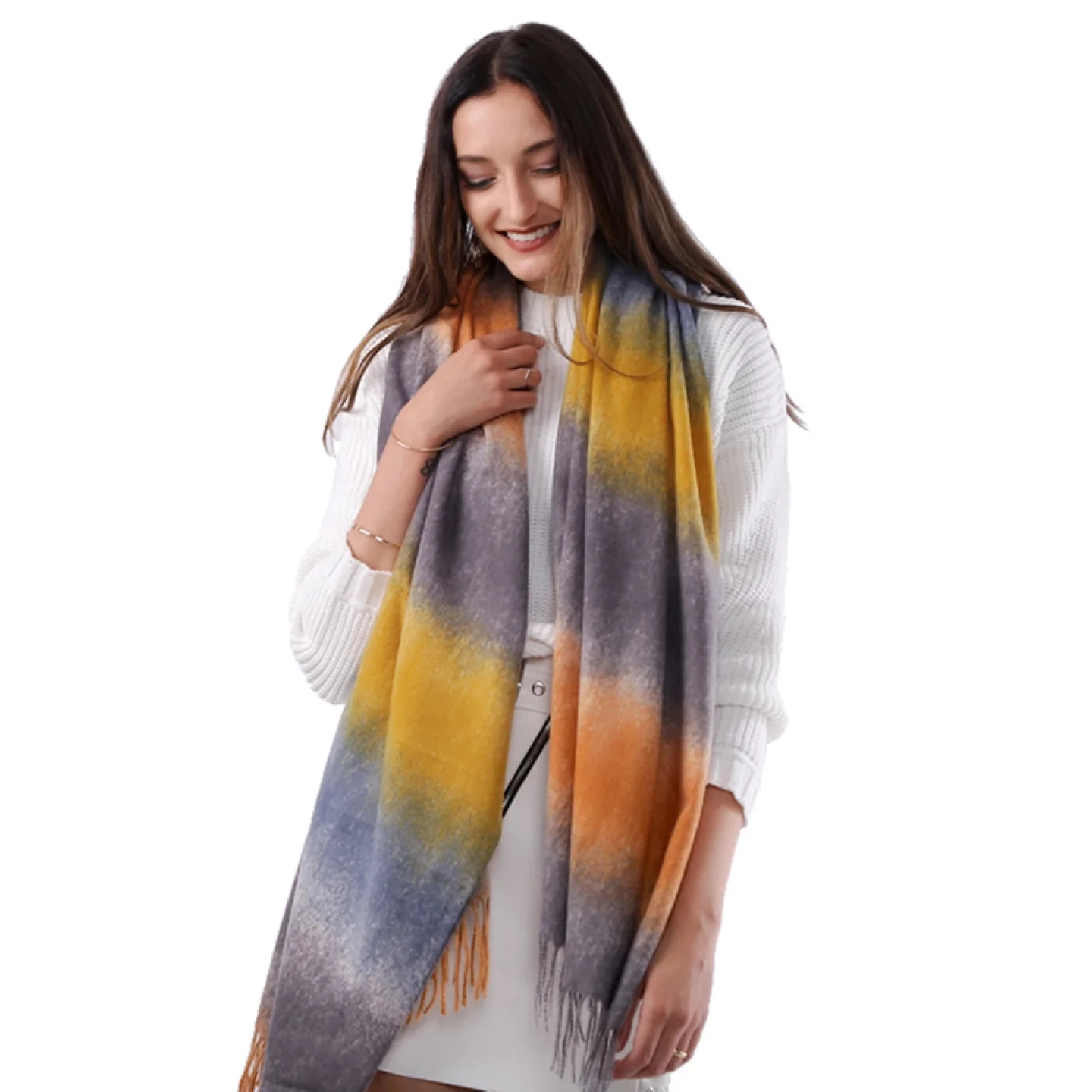 Striped Gradient Scarf/Shawl in Yellow/Grey/Orange