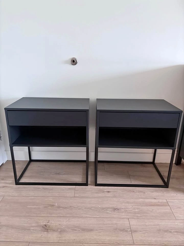 Sleek, minimal, and versatile - these matte black nightstands bring a modern touch to any bedroom. Solid build and functional design with plenty of surface space.