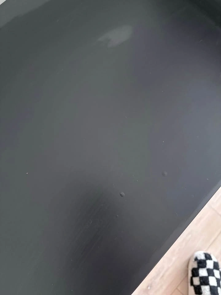 One has a small scuff, the other has two tiny water bubbles on the top. Minor cosmetic wear only, still look almost new.