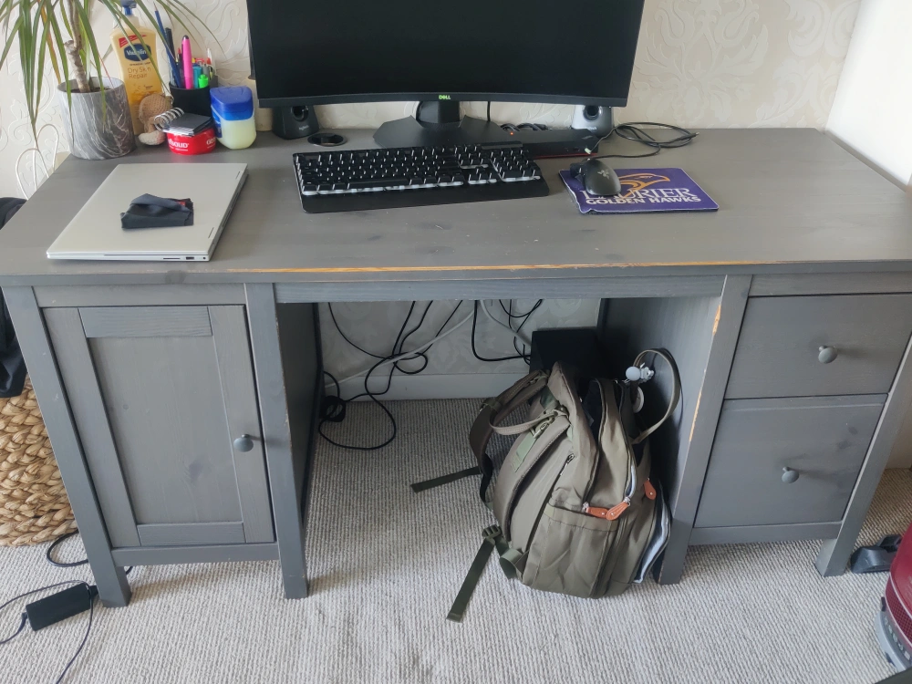 Selling a sturdy grey wooden desk! It features both drawers and a cabinet for ample storage. Perfect for a home office or study space. IKEA Grey HEMNES desk Wear and tear Must be able to pick up Smoke and pet free home https://www.ikea.com/ca/en/p/hemnes-desk-white-stain-light-brown-20535044/?utm_source=google&utm_medium=organic-shopping&utm_campaign=shopping_feed&utm_content=free_google_shopping_clicks_Workspaces&gad_source=4&gad_campaignid=15835029720&gbraid=0AAAAACqC6EqwOsWJPb7jmUeZAW75PHcmn&gclid=Cj0KCQjw8p7GBhCjARIsAEhghZ1igg0KnXbwXyZTigPbTX2XO-P_znOrEy0R-mwGnDtbR7vA48T0ZsIaAl5qEALw_wcB