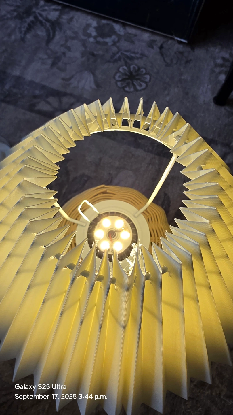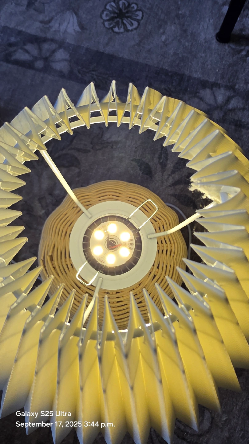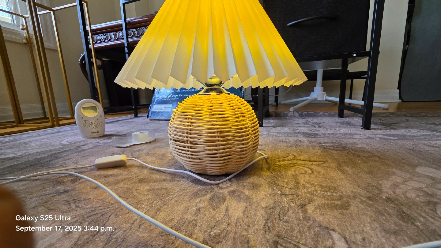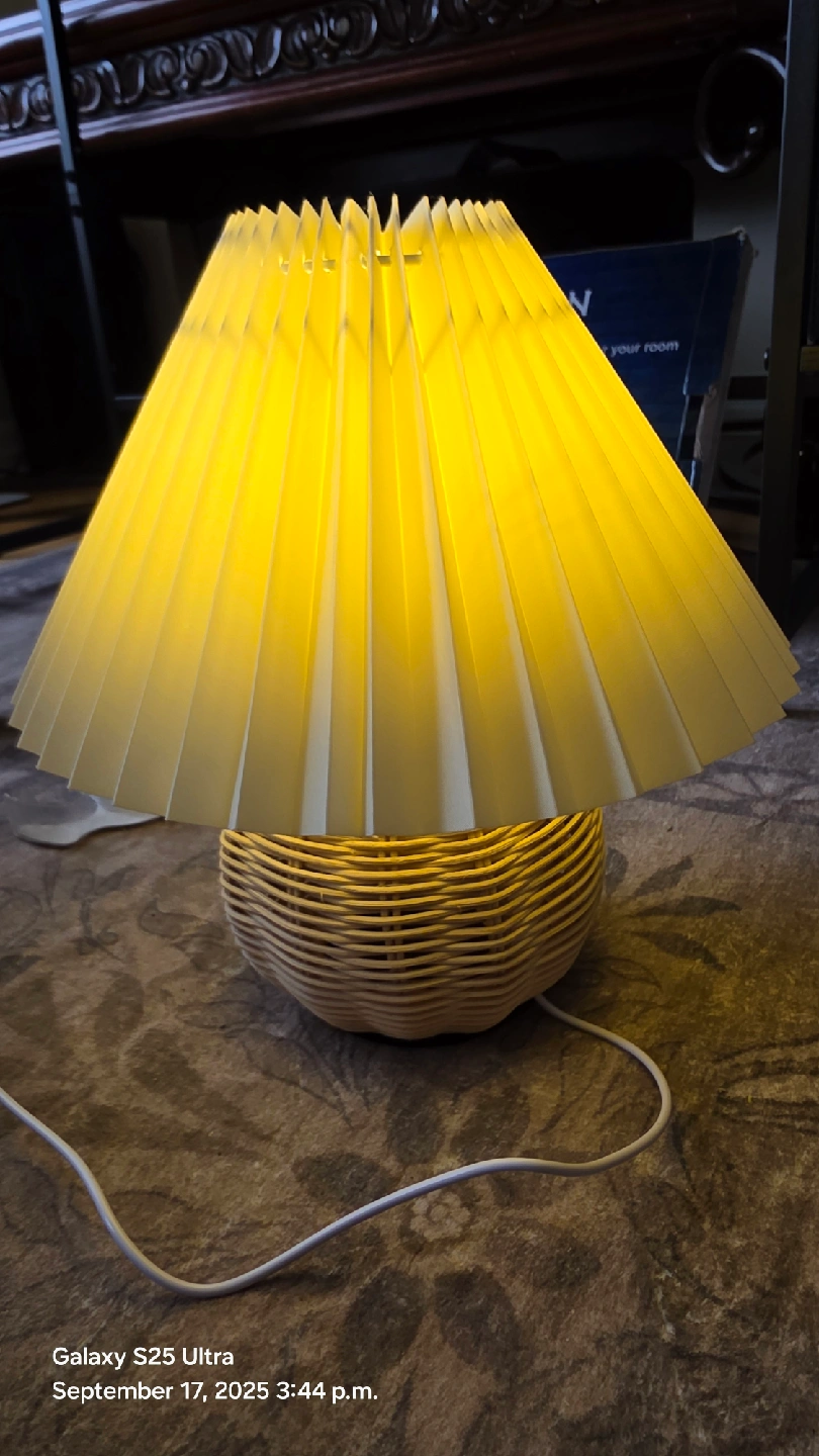 159Here's a cute wicker table lamp that would look great in any room! It has a unique pleated shade design and a warm, inviting glow. Perfect for adding a touch of cozy charm to your home