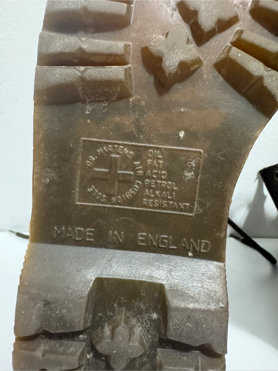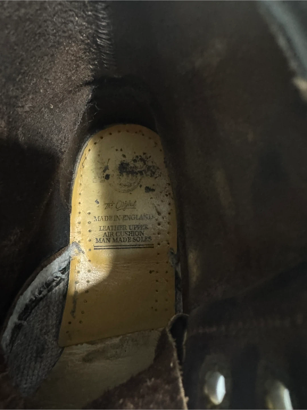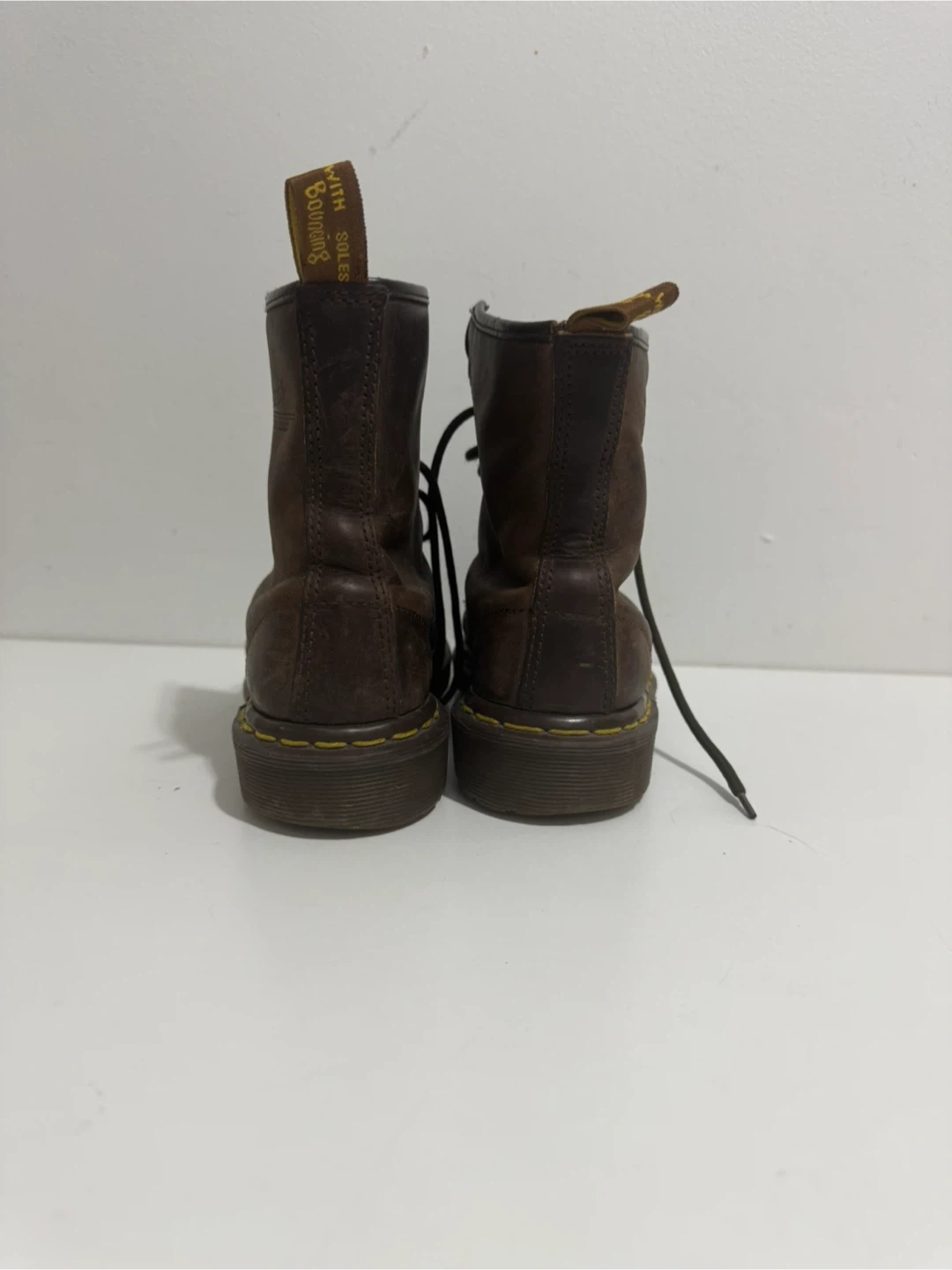 Selling a pair of Dr. Martens ankle boots in brown leather. They have some signs of wear, as you can see in the photos, but they're still in good shape. The soles are man-made and the uppers are leather. - Made in England!!