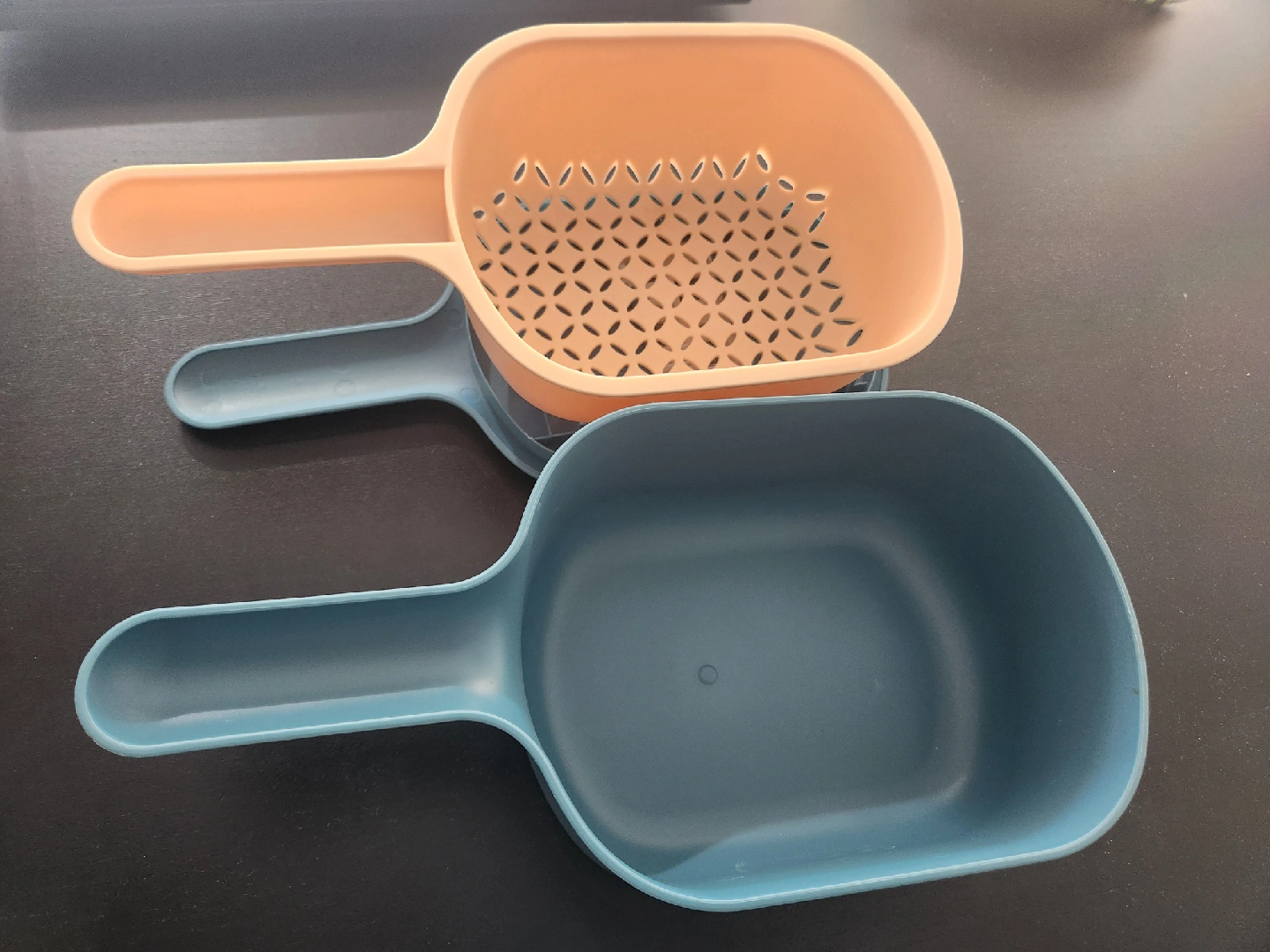 I'm selling a kitchen vegetable slicer set. It includes a slicer and two different scoops. These are great for quickly prepping veggies for meals