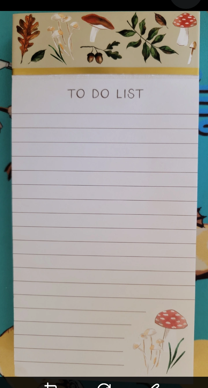 A cute notepad from Molly & Rex to keep your tasks organized! It features a charming mushroom and foliage design. Great for jotting down your daily to-dos! Length: approximately 8 inches. Some of the pages were used and there are still plenty to enjoy! Open to negotiating the price; please reach out. Thank you for taking a look at my listing! Have a wonderful day.