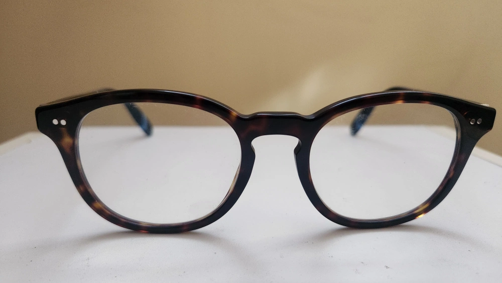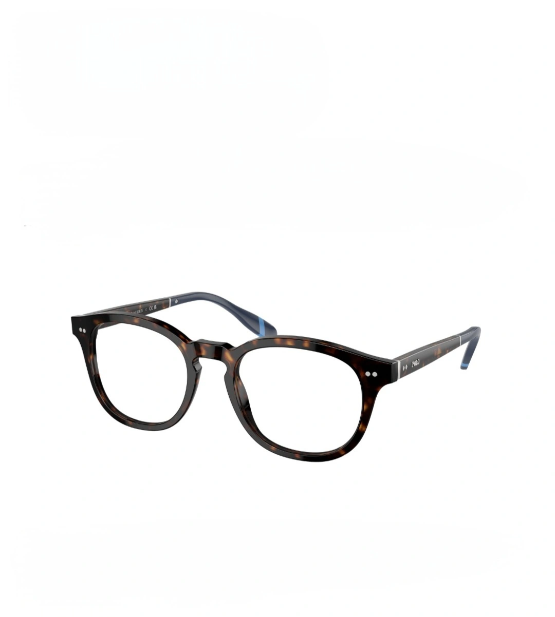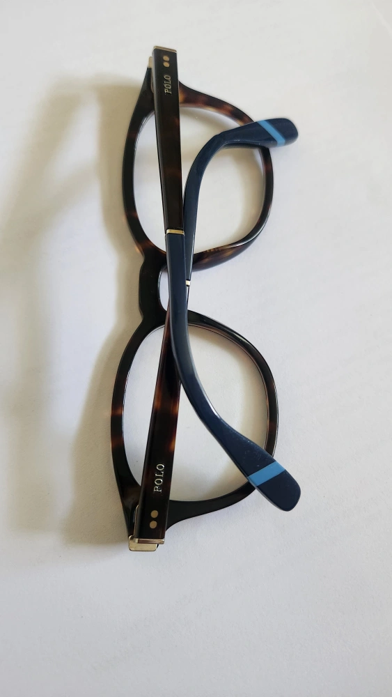 Selling a pair of Ralph Lauren eyeglasses. The frames have a classic tortoise shell pattern with a pop of navy blue on the temple tips. They're in great condition and ready for a new home! The model number is PH2243