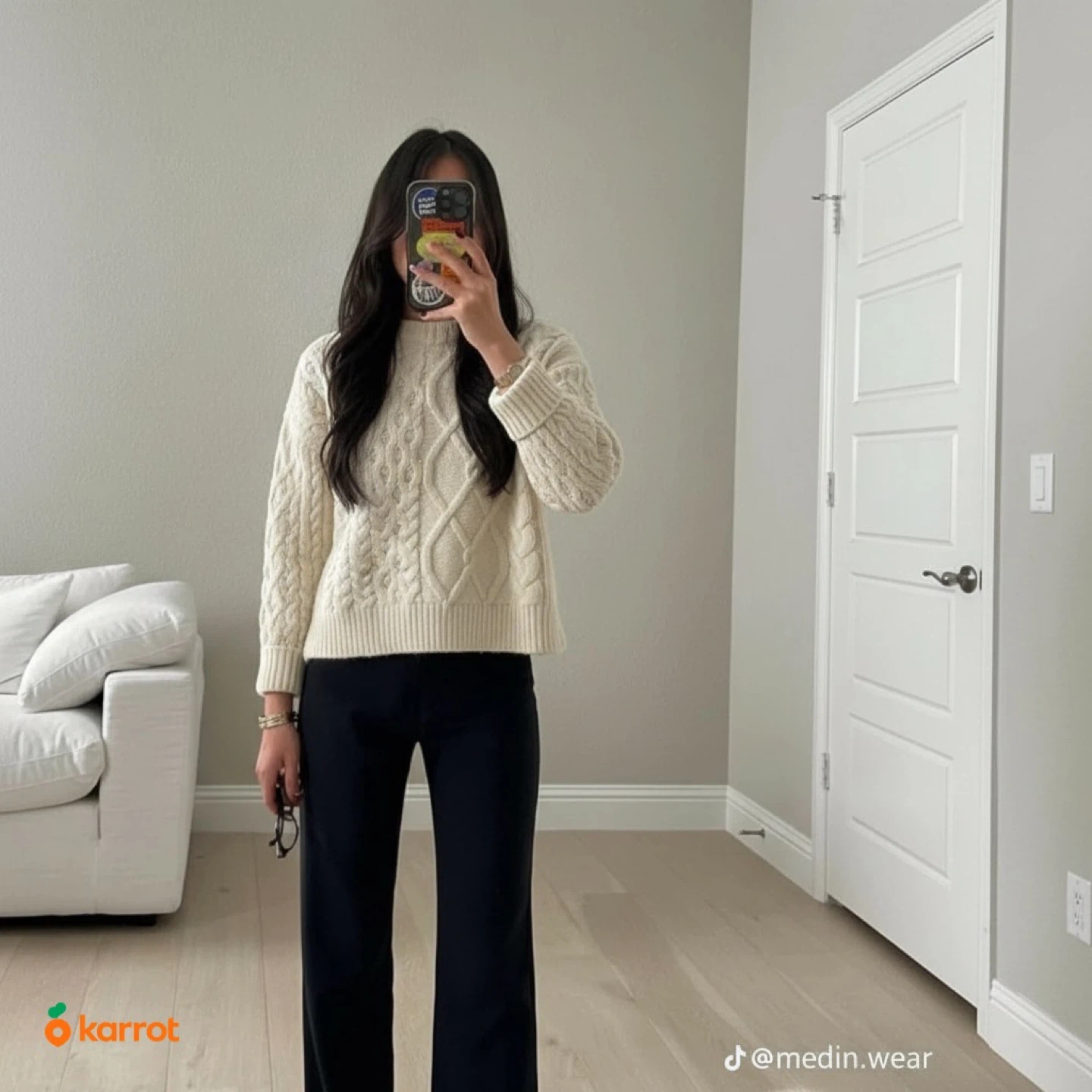 Cozy cream-coloured knit sweater from HM. It's a size small and made of 50% polyester, 45% acrylic, and 5% wool. Perfect for staying warm on chilly days!