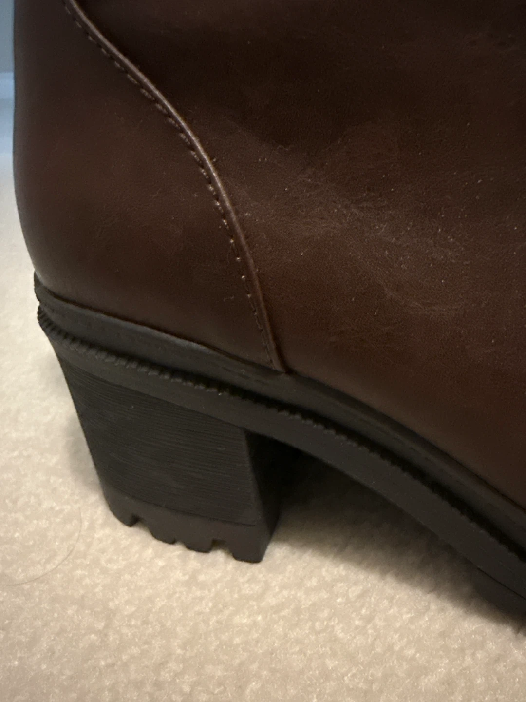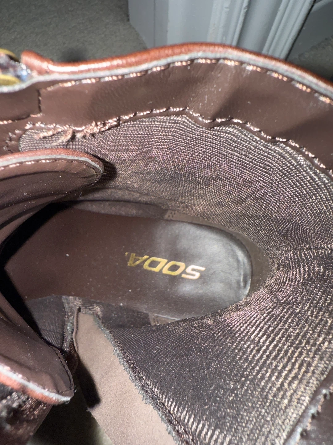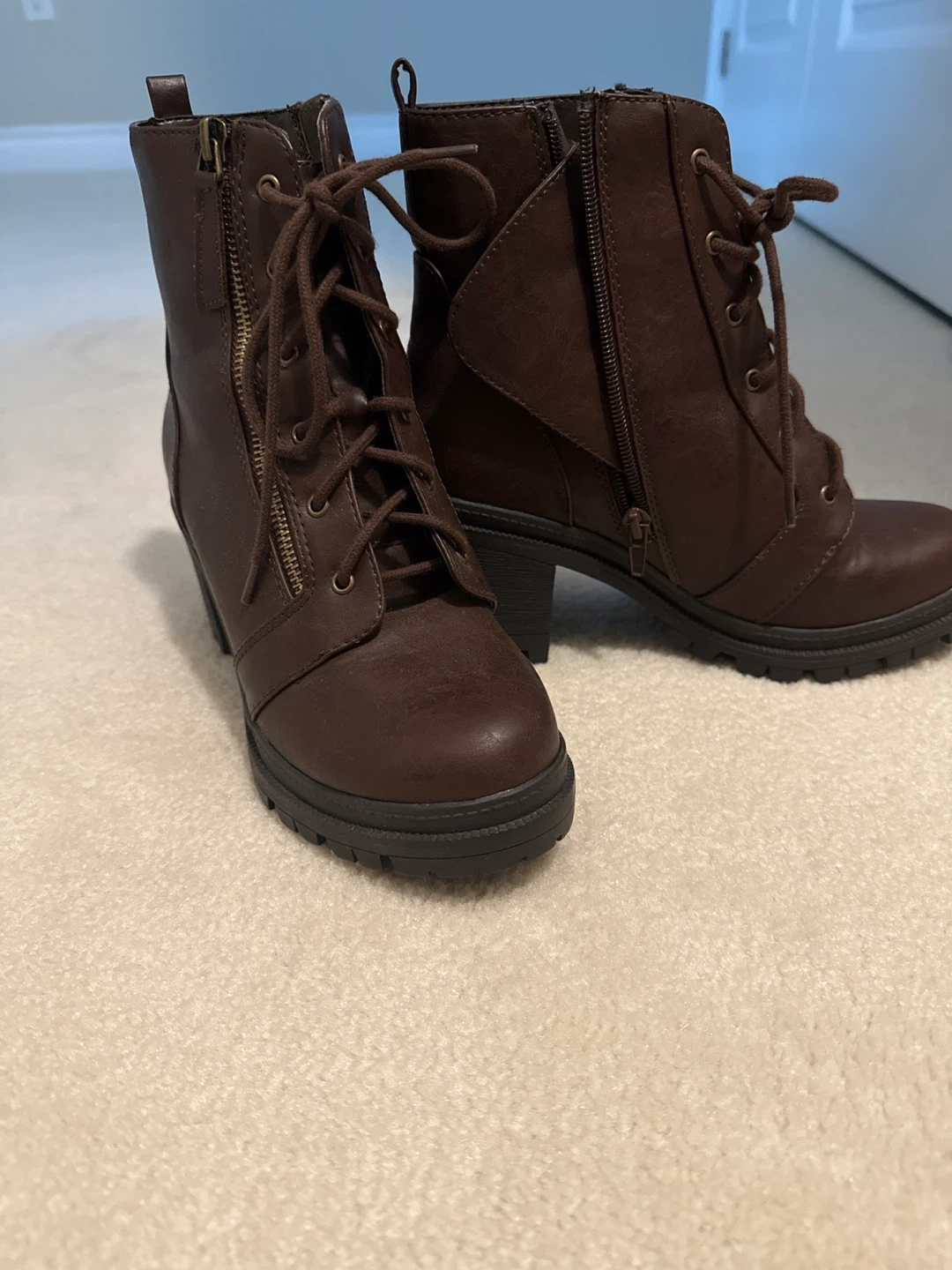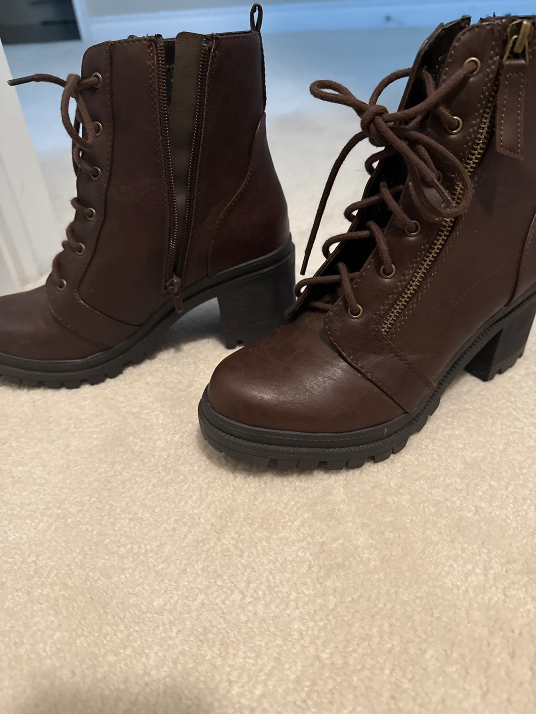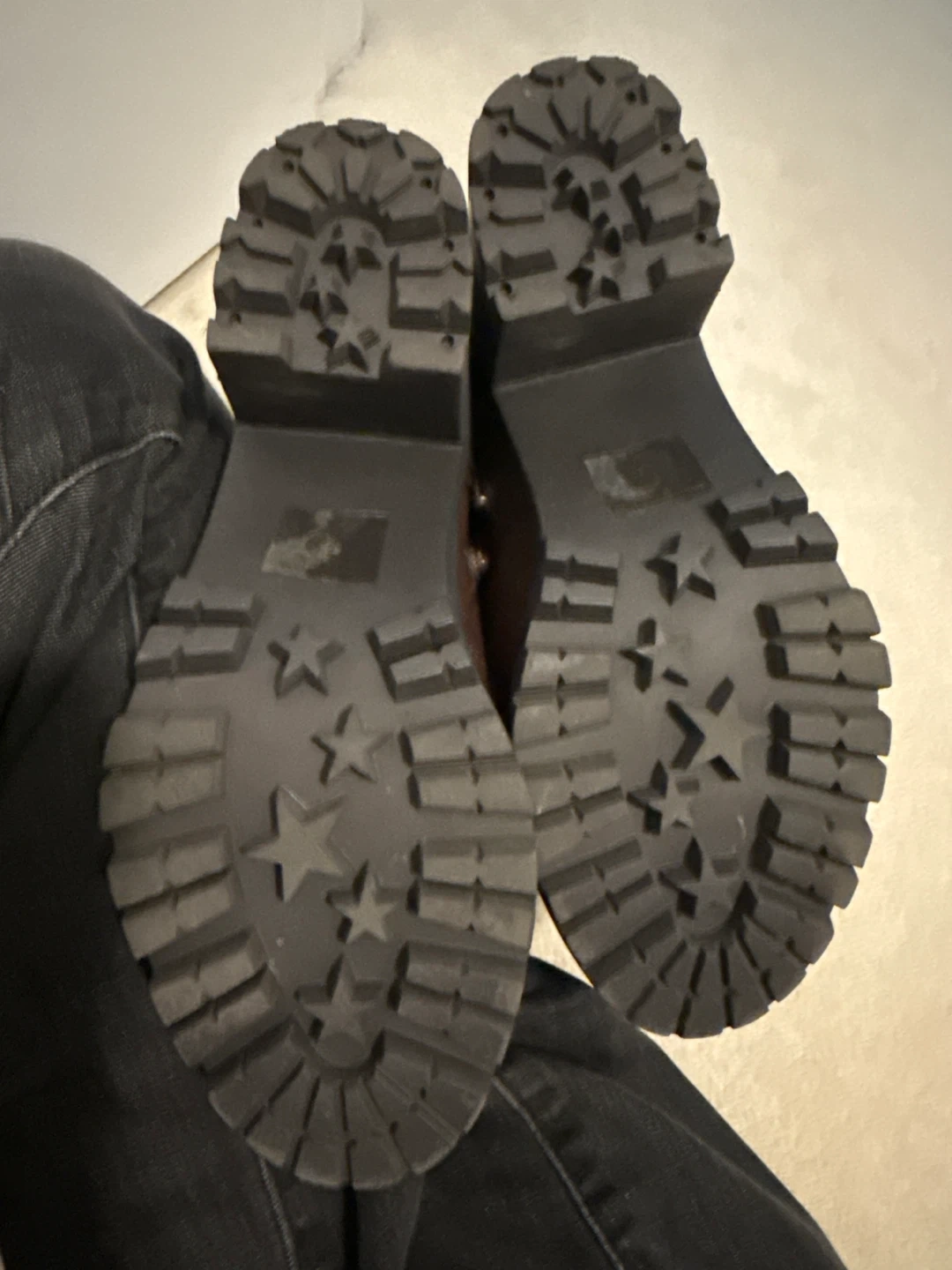 These are a pair of brown lace-up heeled boots from SODA. They have a lug sole with star details. Great for autumn! Never worn.