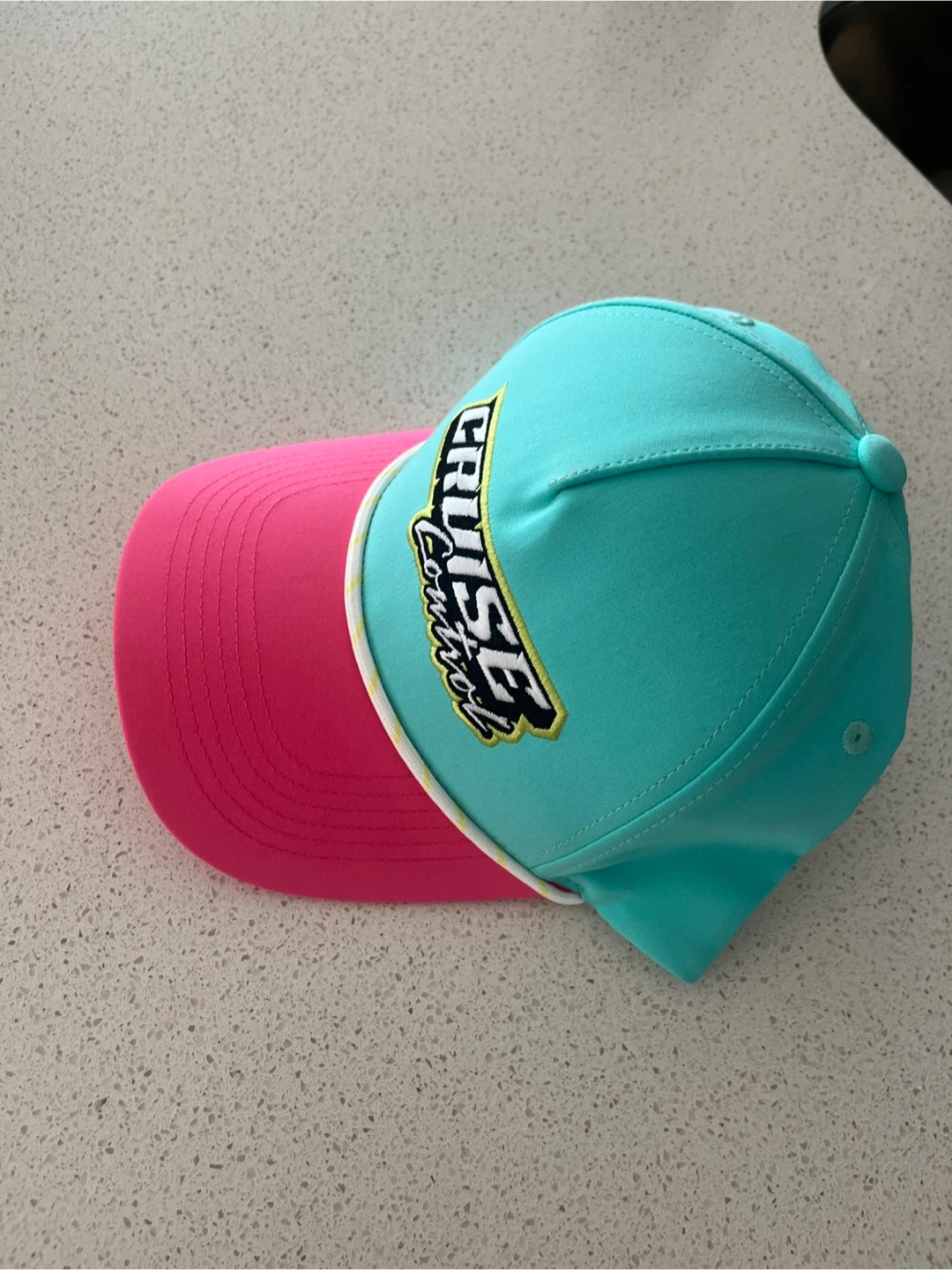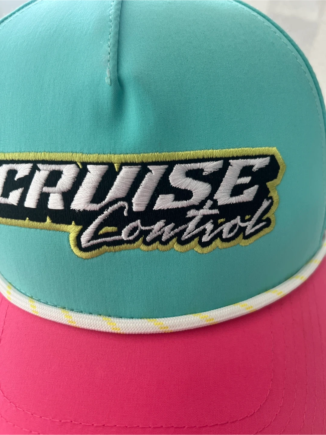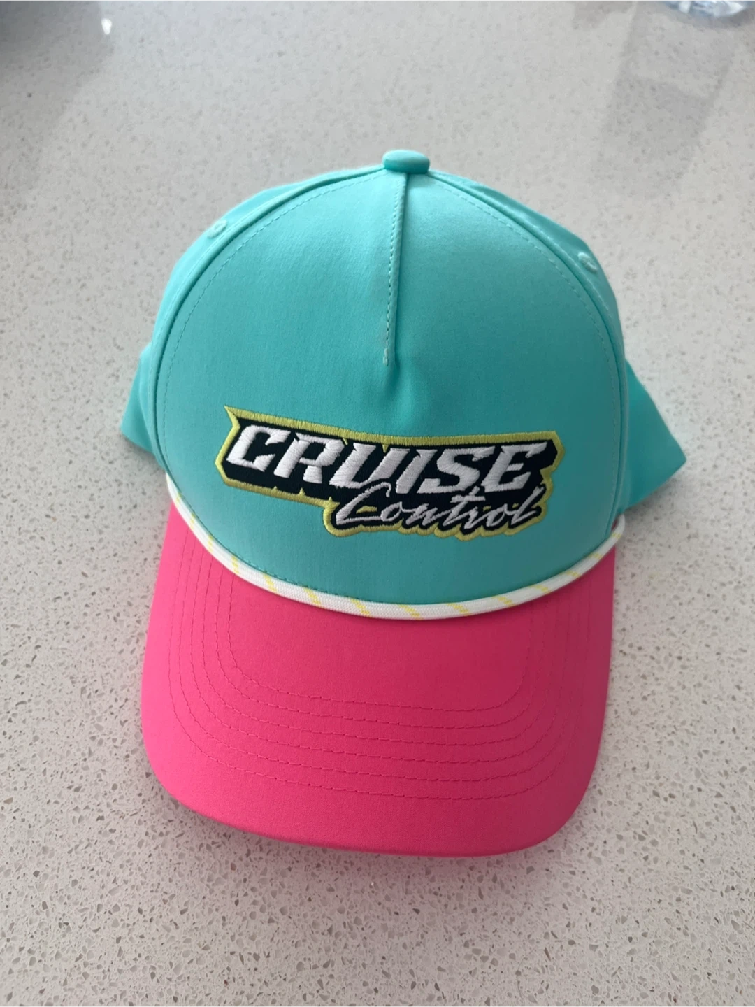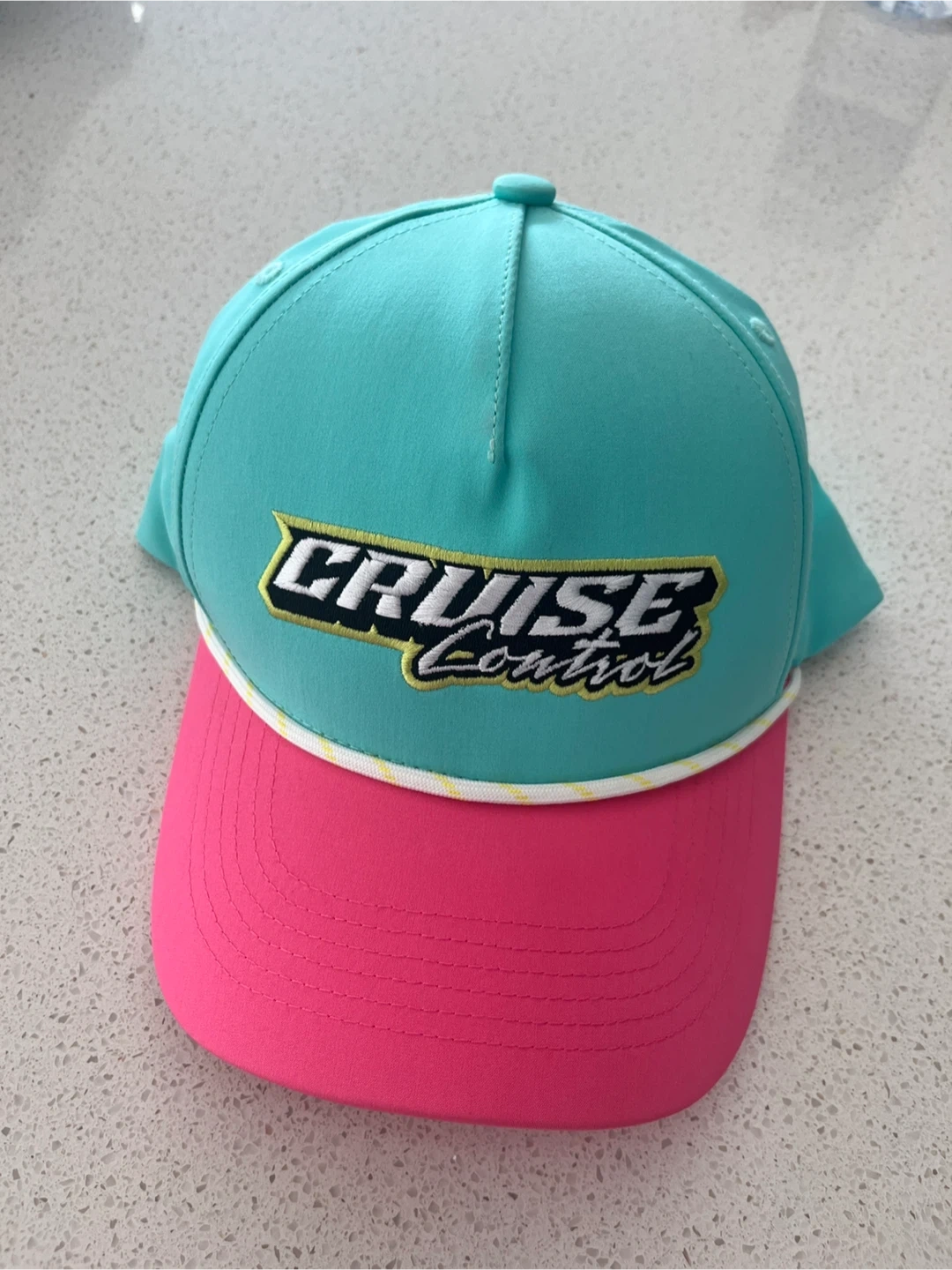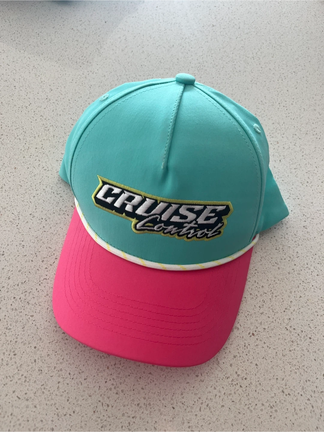 Selling a fun brand new hat with ‘Cruise Control’ embroided! It's turquoise on top and pink on the brim. Great for adding a pop of colour to your outfit