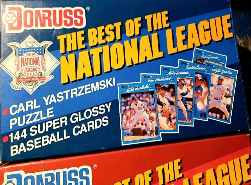 Selling a box of Donruss The Best of the National League baseball cards! This includes a Carl Yastrzemski puzzle and 144 super glossy baseball cards featuring Best players from 1990. Great for any baseball card collector!