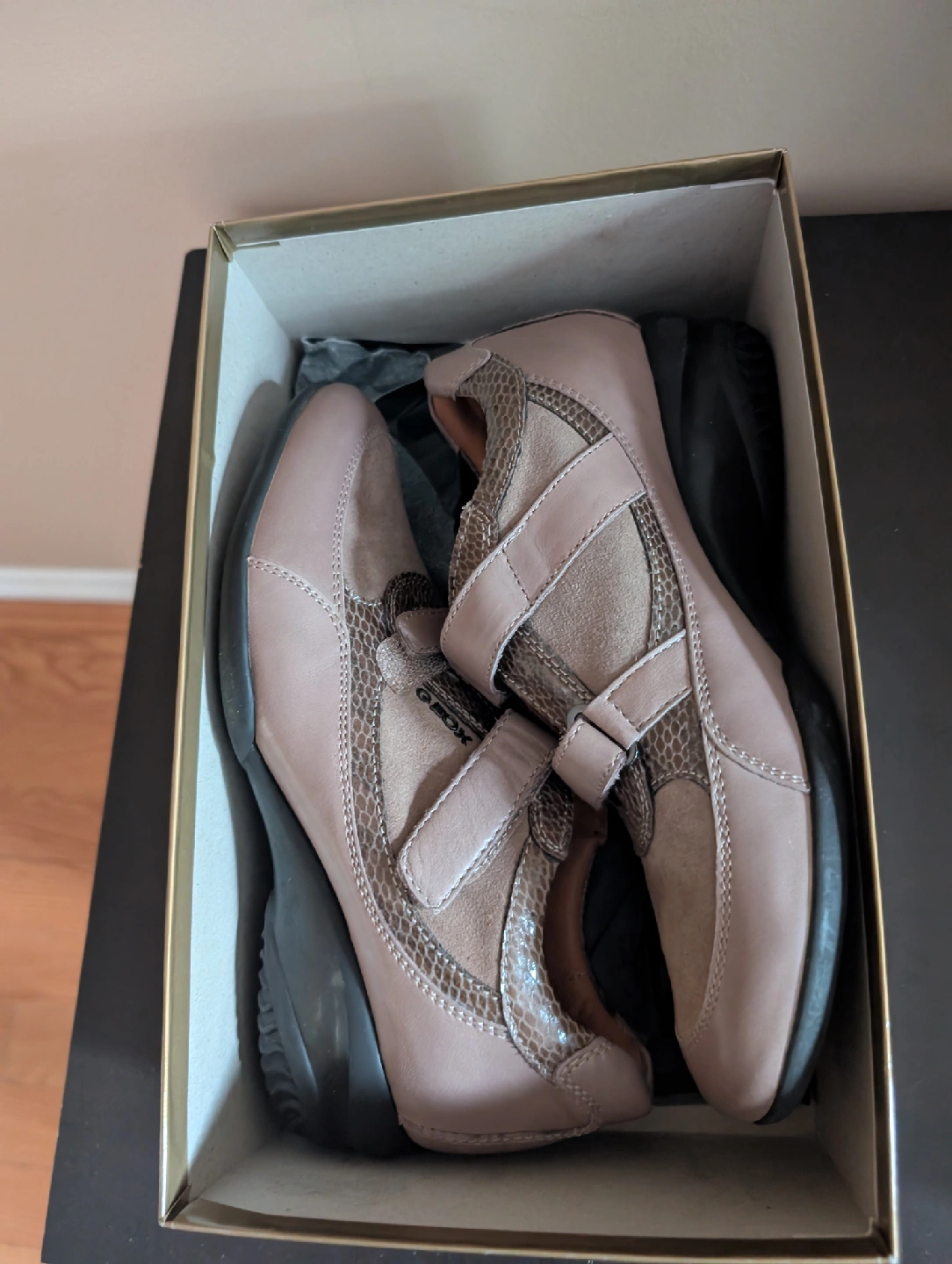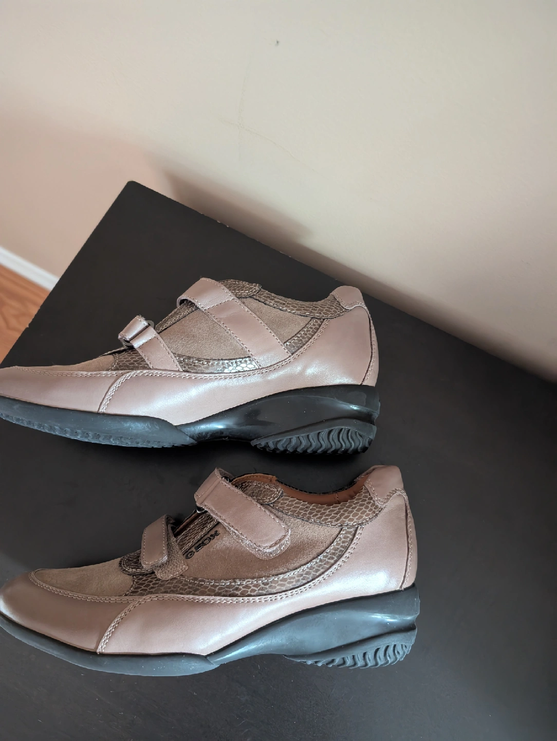1000+Selling a pair of brand new Geox women's shoes/ sneakers. They feature a leather upper and a comfortable sole, perfect for everyday wear! Size 37 European made