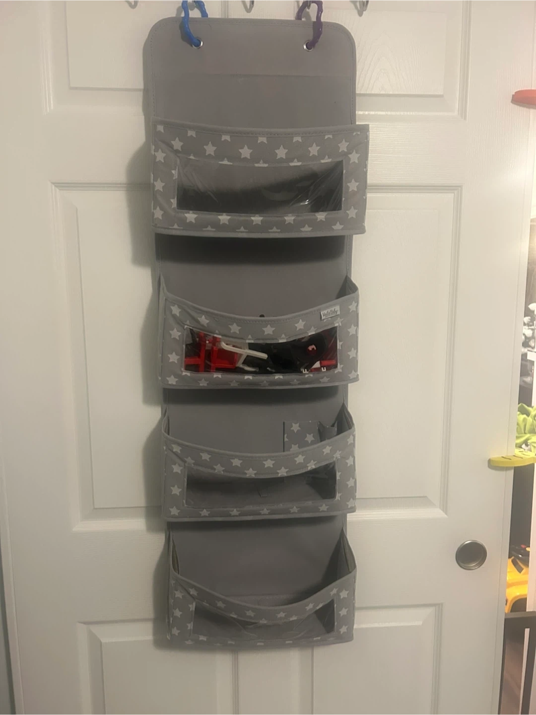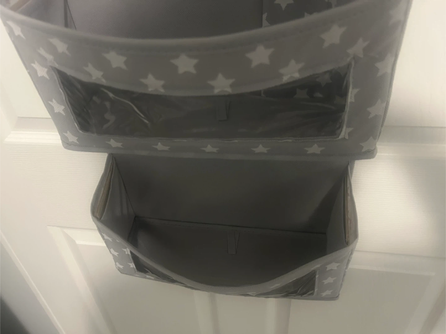 Keep your little one's space tidy with this Vesta Baby Nursery Decor hanging organizer! It's a great way to store toys, diapers, or other essentials right on the door or wall. The grey colour and star pattern will match any nursery decor! Perfect for keeping things organized and within easy reach