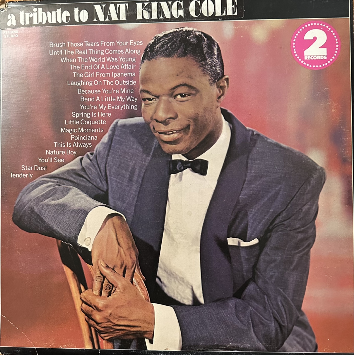 Selling a Nat King Cole vintage rare vinyl record, "A Tribute to Nat King Cole". It's a 2-record set featuring many of his hits. The record is in good condition and ready to be enjoyed by a new listener. A great addition to any vinyl collection!