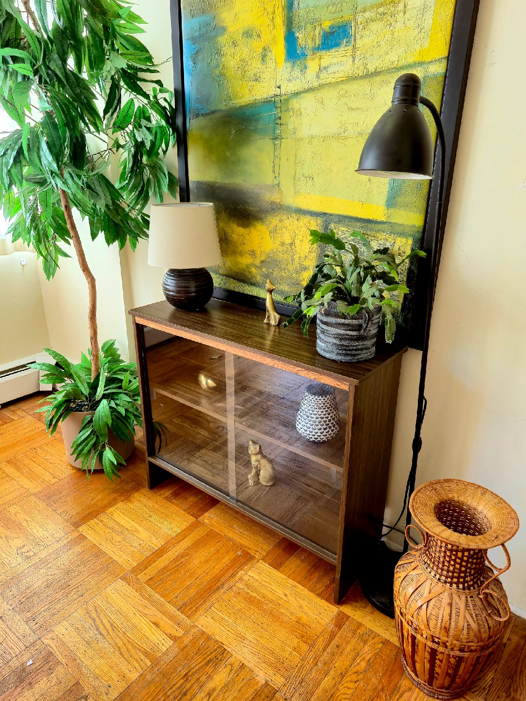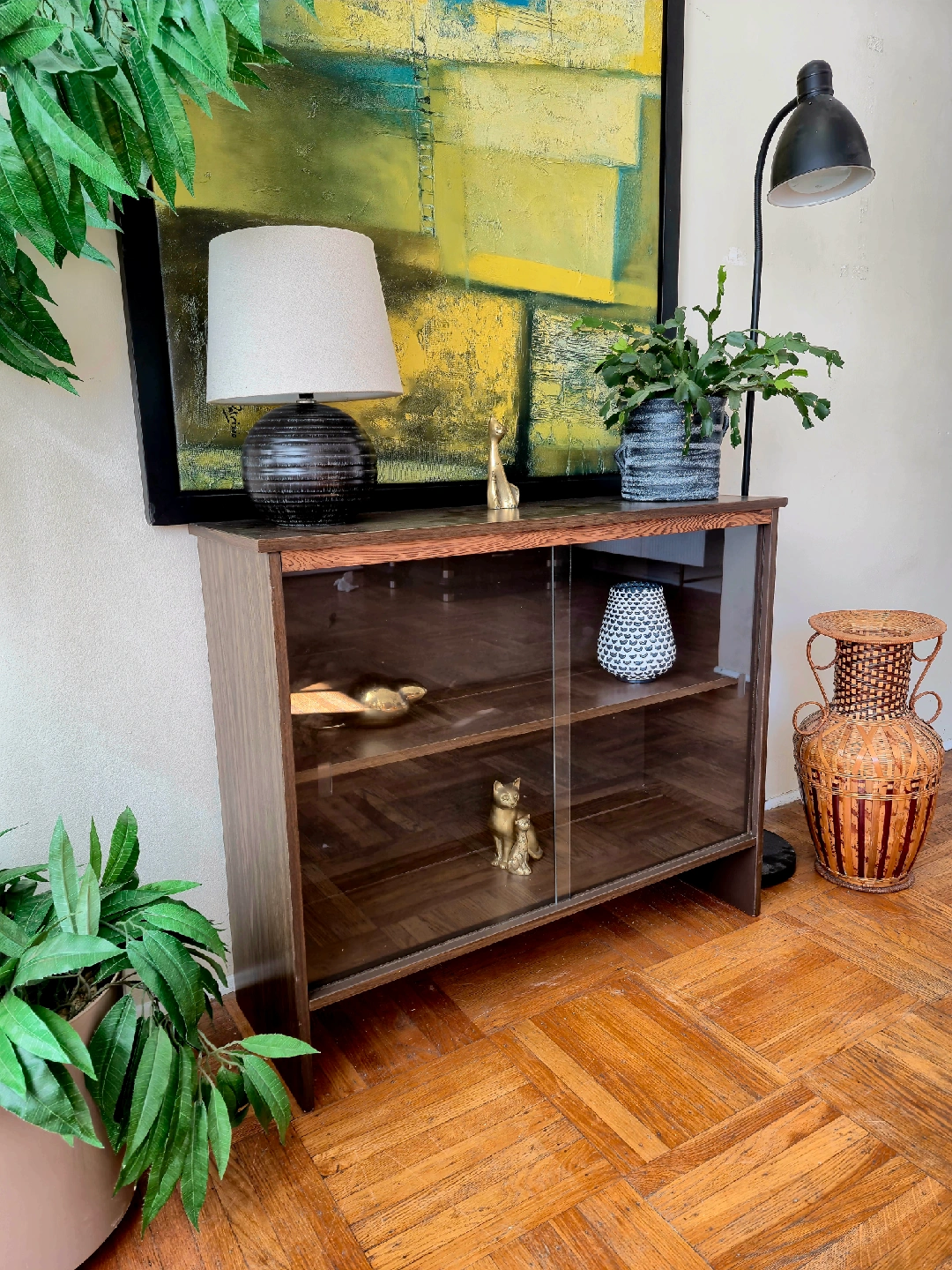 99Mid century modern sliding glass bookcase offering three tiers of storage in good vintage condition. Perfect for displaying your favourite items or storing books and other belongings. It's in great shape and ready for a new home 36w x 12d x 30h Pick up in downtown Vancouver or delivery may be arranged for a reasonable fee. Priority is given to those who are able to pick up. Follow us on Instagram to enjoy an exclusive discount on select furniture items: https://www.instagram.com/vanvaluevintage Tags: mcm mid century modern retro vintage antique 1940s 1950s 1960s 1970s sixties teak walnut liquor cabinet shelf shelves shelving unit tv film set dec bookcase display cabinet buffet server sideboard Hutch credenza Scandinavian Danish Denmark Sweden Norway west elm pottery barn crate and barrel structube article cb2 eq3 scandesign film set dec