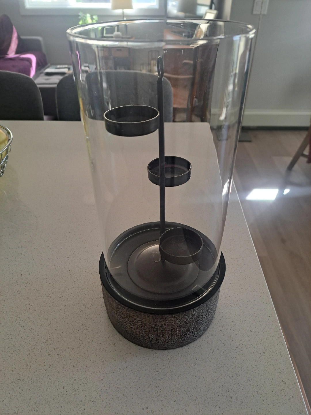 Selling a PartyLite candleholder with a glass hurricane. It's in great shape and would look lovely in any room. Perfect for creating a cozy atmosphere!
