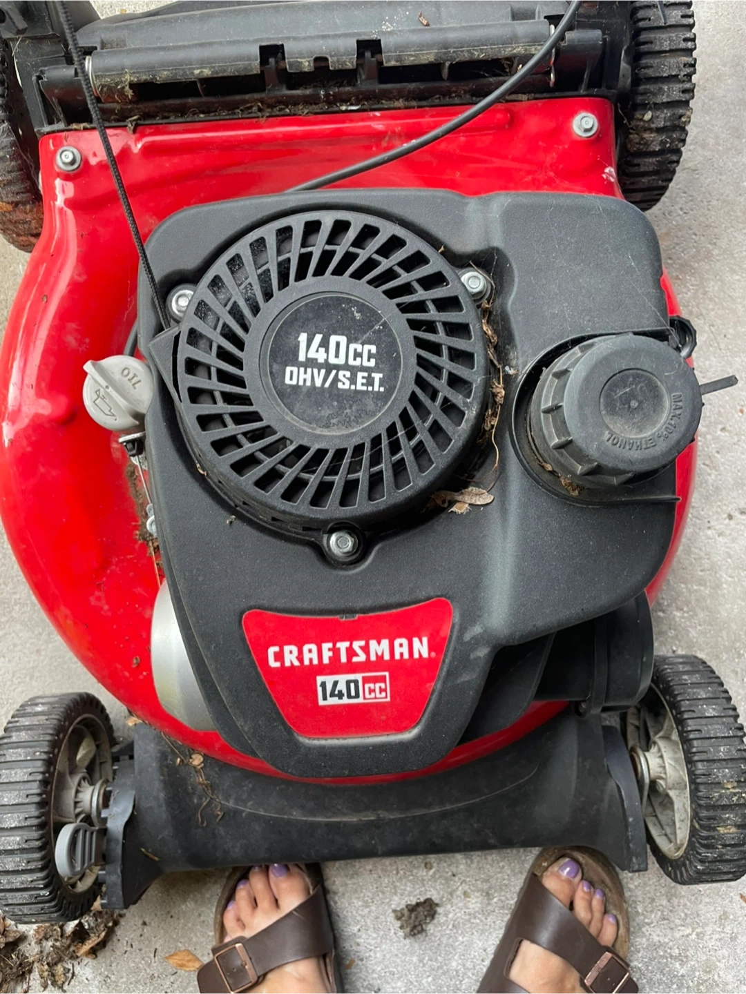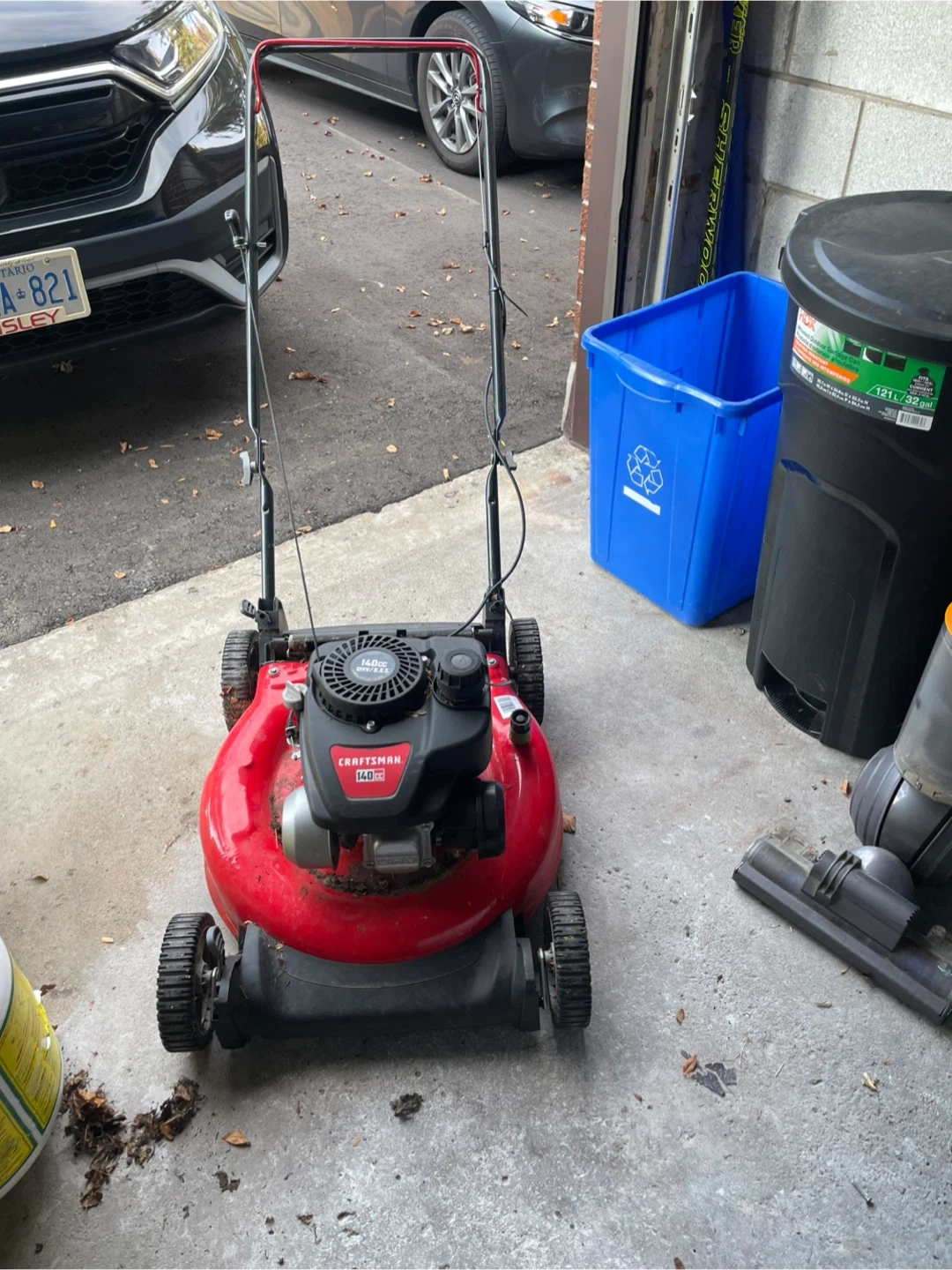 Selling a Craftsman 140cc gas lawn mower. It's red and in good working condition. Comes with a dust blocker bag for collecting grass clippings.