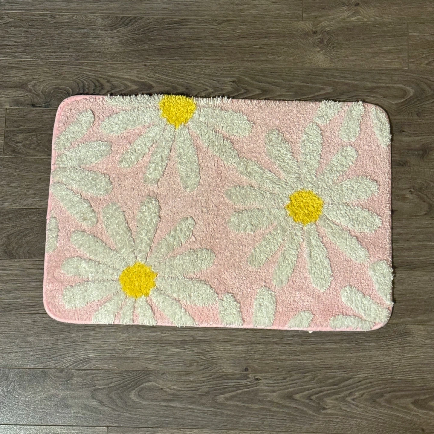 Add a touch of floral charm to your bathroom with this adorable daisy flower bath mat. The soft plush material feels great underfoot. The mat features a cute daisy design in pink, white and yellow. It's in great condition and ready to brighten up your space! CASH ONLY PICK UP ONLY