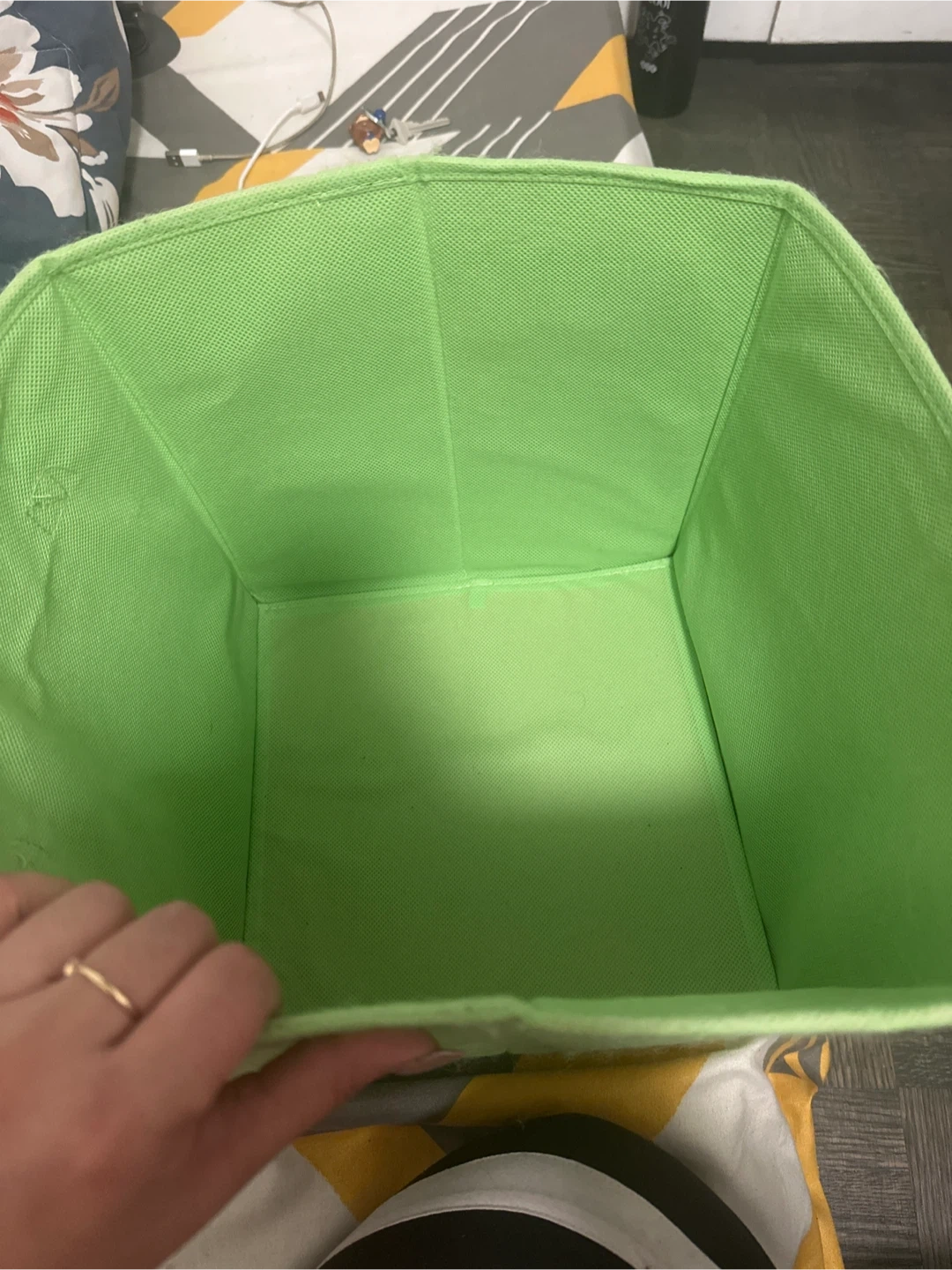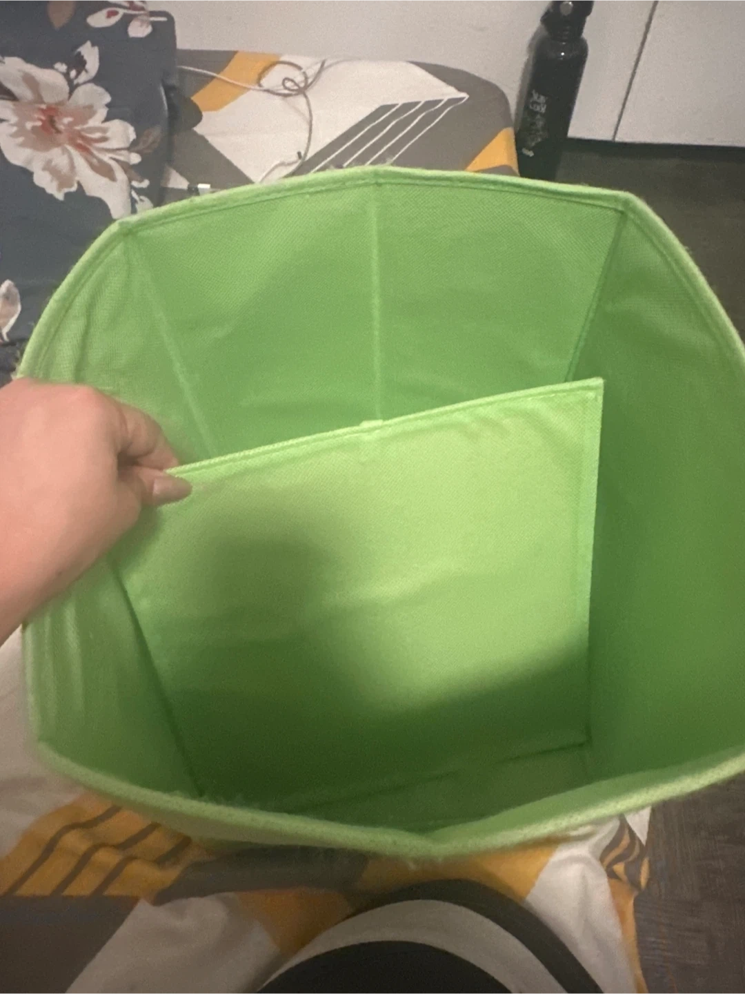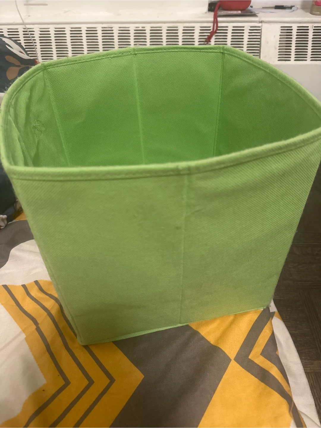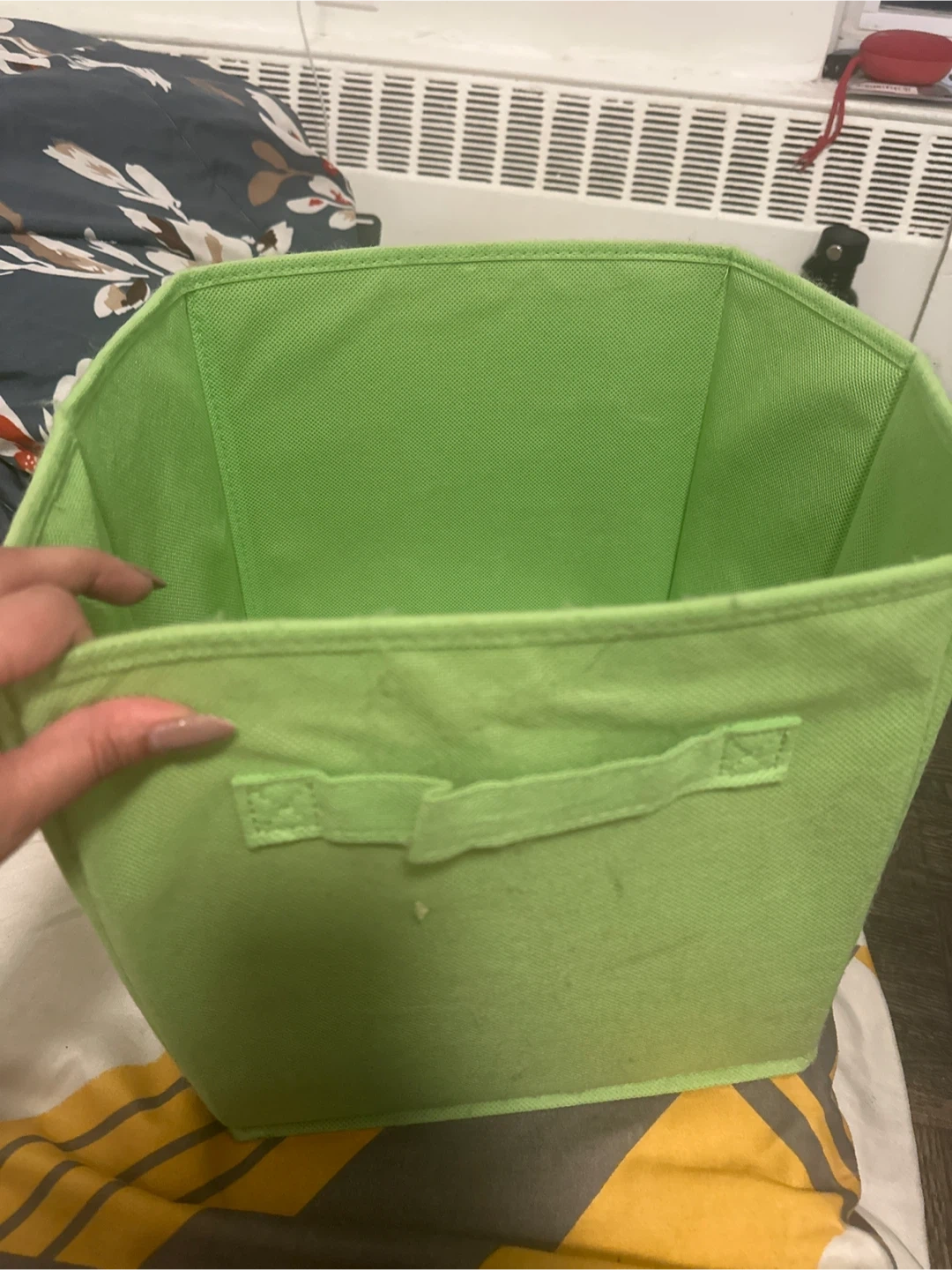 Here's a handy green storage bin! It's in great shape and ready to help you organize your space. Perfect for decluttering or storing items neatly