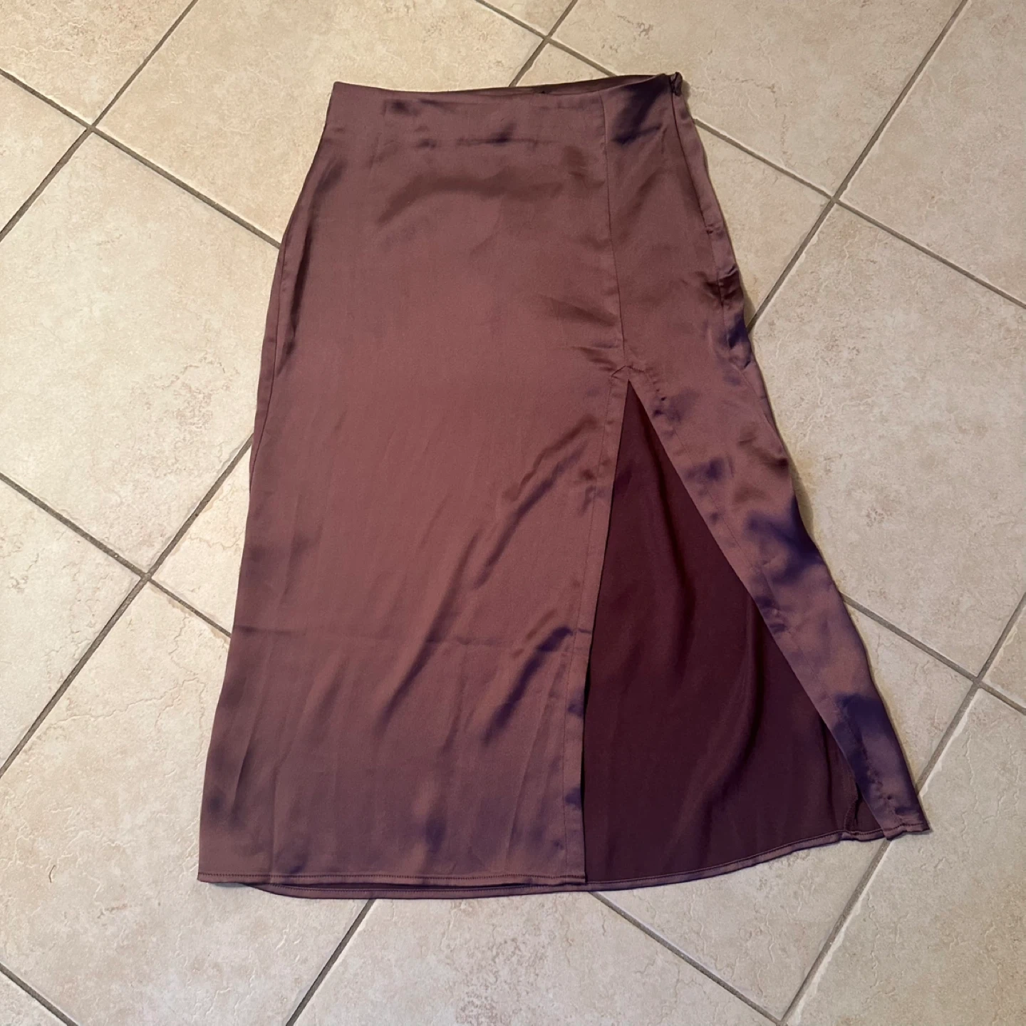 Women’s small Length: 30” Waist: 15” Beautiful skirt Has a left leg slit Luxurious feel & look Feels silky smooth exactly like the ones from Aritzia Babaton that are $100+ New never worn with tags ✨