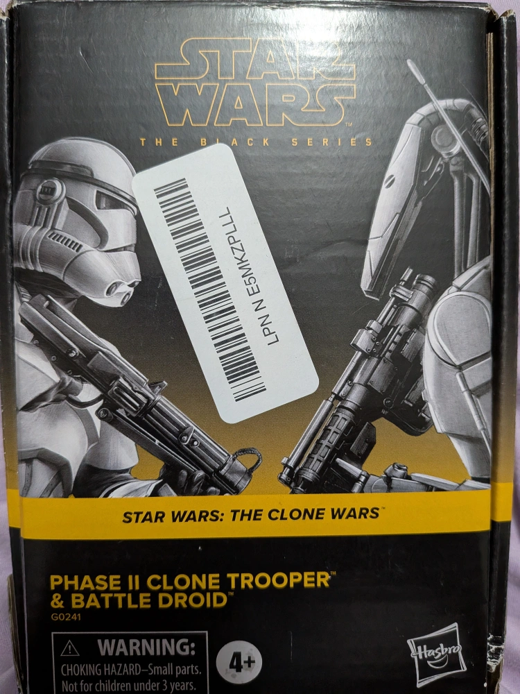 Selling a Star Wars The Black Series Phase II Clone Trooper & Battle Droid figure! It's in great condition and includes the original box. A must-have for any Star Wars collector