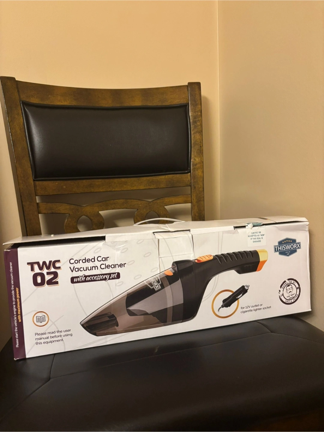 Selling a brand new THISWORX TWC 02 Corded Car Vacuum Cleaner, still sealed in its original box! It comes with the accessory set and is ready to keep your car spotless. Just plug it into your car's 12V outlet or cigarette lighter socket and you're good to go! Please read the user manual before using this equipment