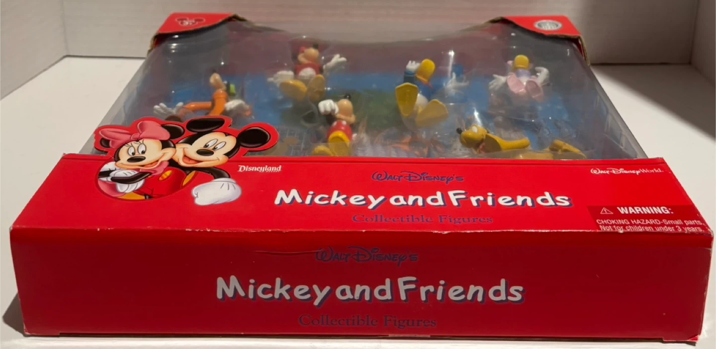 Selling a set of Disney Mickey and Friends collectible figures! This set includes Mickey, Minnie, Goofy, Pluto, Donald, and Daisy. The figures are in their original box, perfect for any Disney collector
