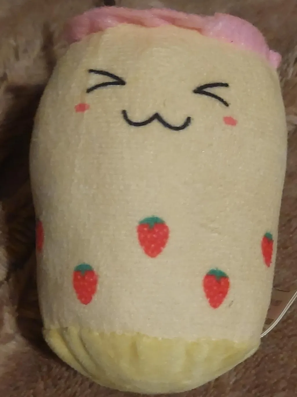 Super cute strawberry plushie! It's in great condition and has a sweet little face. Perfect for cuddling or as a decorative piece