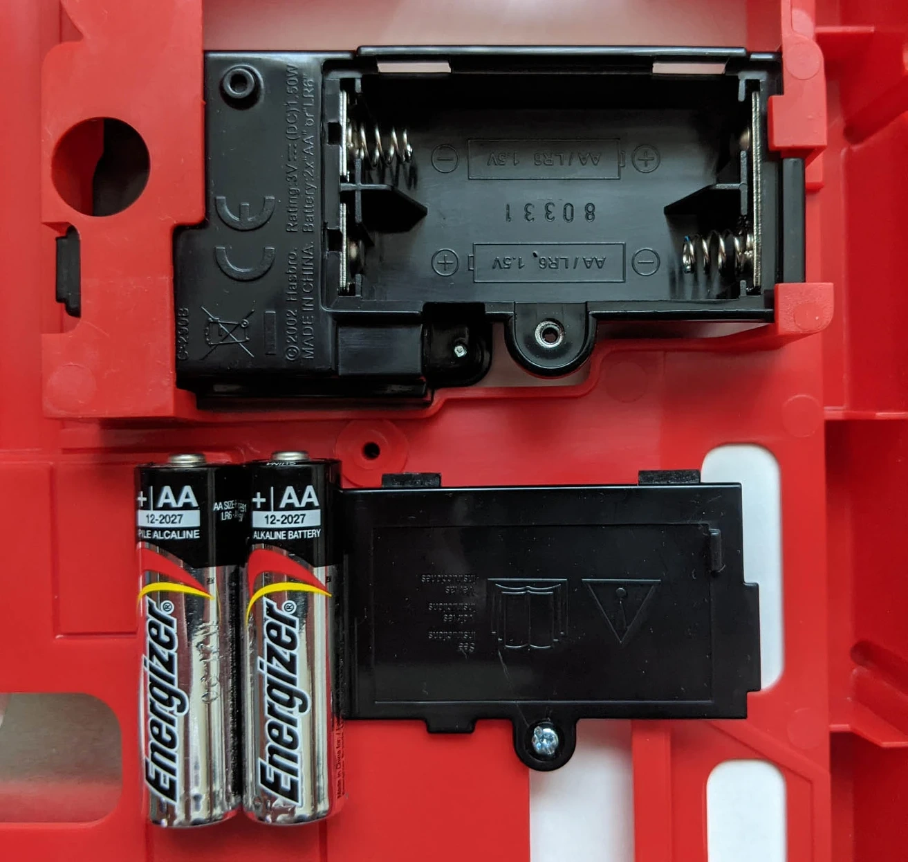 All game parts and pieces are in excellent condition. Electronics have been tested and are 100% functional (nose light and vibration). Battery compartment is clean, no corrosion.