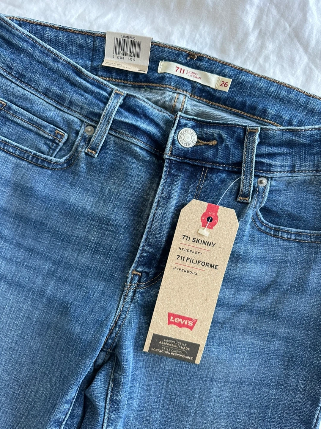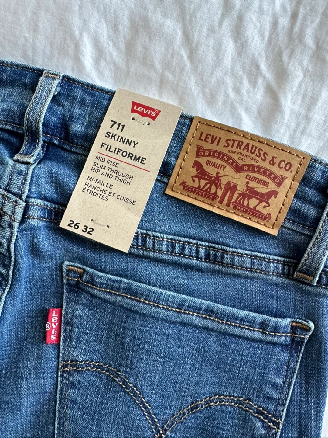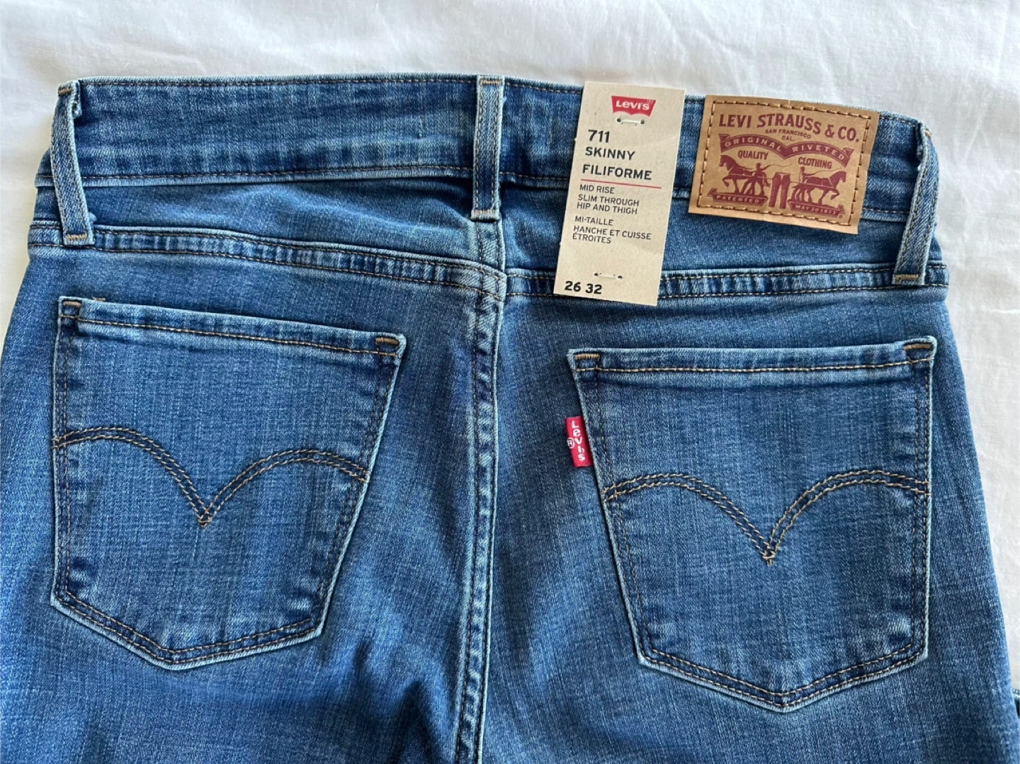 Brand new with tags Levi's 711 Skinny jeans in size 26W x 32L These jeans are a mid-rise, slim through the hip and thigh, skinny leg. Pickup in Richmond. Cash only.