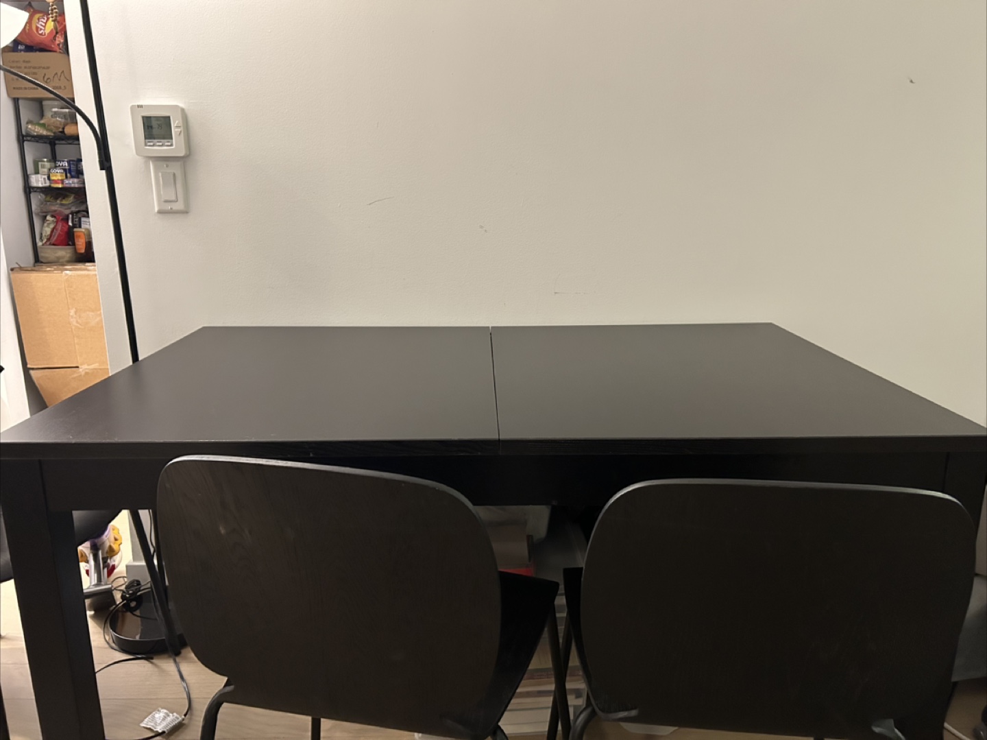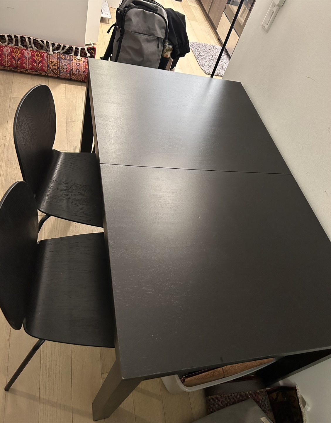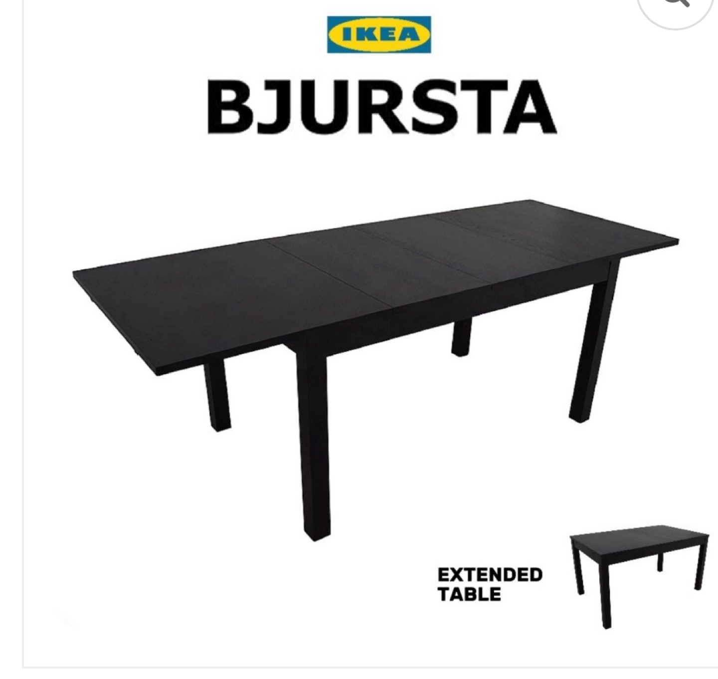 Selling an IKEA BJURSTA extendable dining table in black and 4 KARLJAN black wooden chairs all together. IKEA No longer sales this model we’ve had for few years.