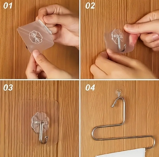 168Set of Traceless Wall Hooks - Casual Style Plastic Utility Hooks Set for Keys, Hats, Towels - Easy to Install, No Need to Punch Holes, Self-Adhesive, Suitable for Bathroom