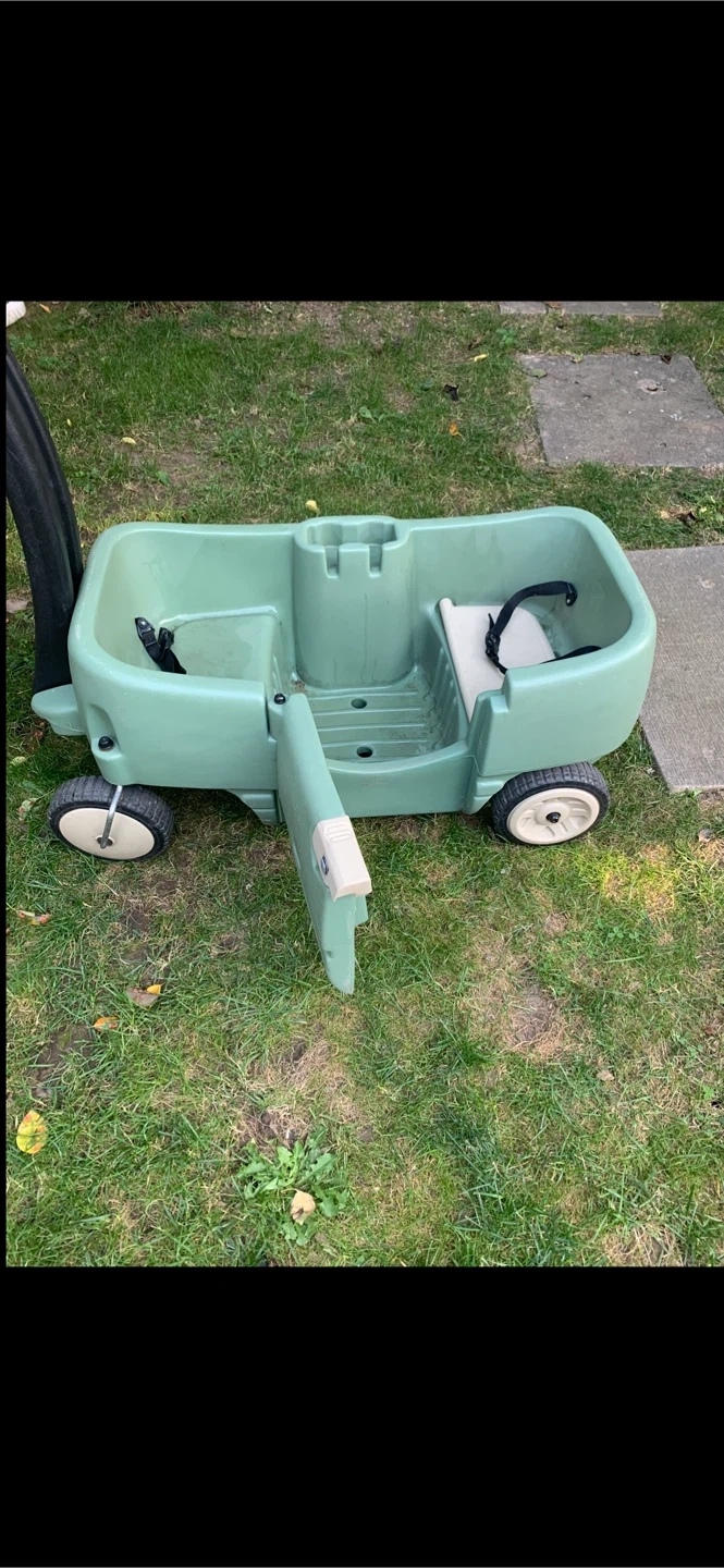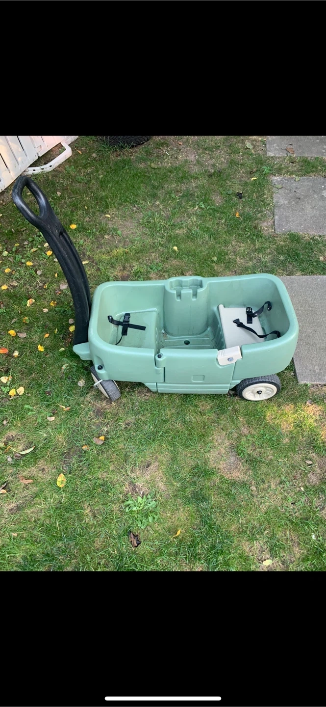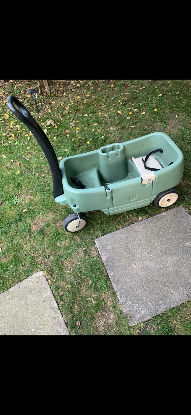 Step2 Wagon in Vibrant Green! This roomy wagon is ideal for thrilling neighborhood escapades, picnics, or beach holidays for kids 1 to 5 years old. It comfortably seats two toddlers and features two safety belts for a safe ride. This wagon has convenient side panel storage for snacks, drinks, sunglasses, and other items. Four sturdy wheels increase the smooth-rolling sensation, offering uncomplicated navigation over varied terrains—lush grass, smooth pavement, or gravel trails.