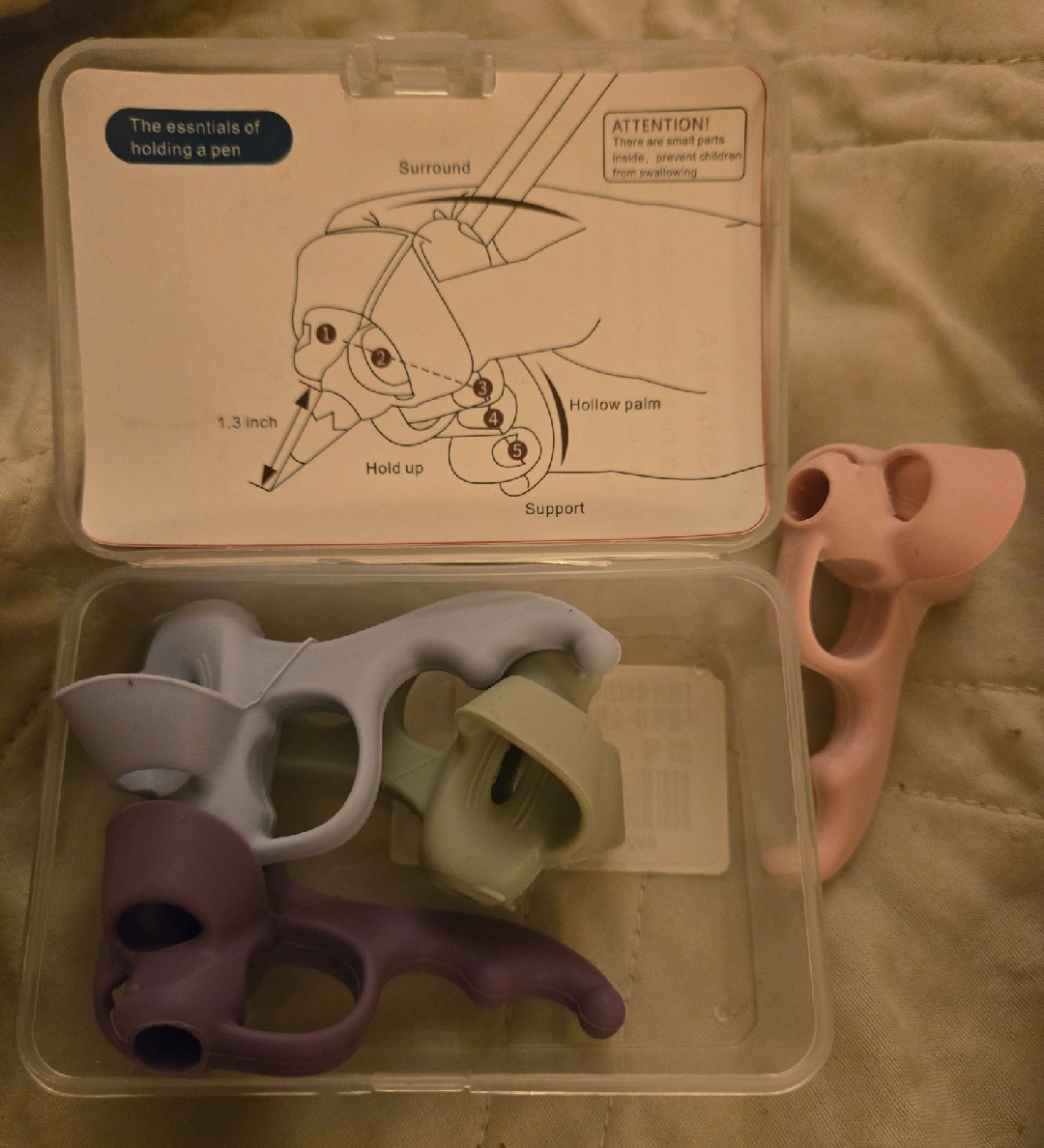 ASMANNA Five Finger Pencil Grips 2.0! These grips accurately locate five fingers and help learn to hold a pen.