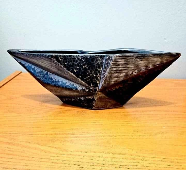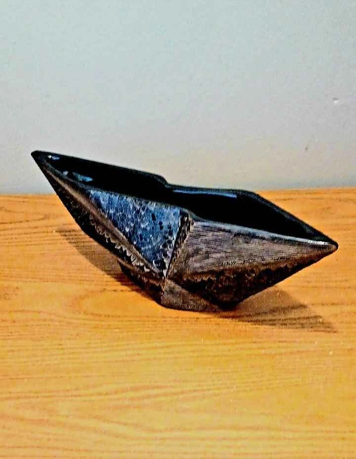 65Vintage, Rare, Boat Shaped Japanese Ikebana Vase Decorative, Textured Ceramic Glazed, Leather Shape For Flowers Arrangement. Length : 31 cm Height : 10 cm Excellent Condition, no chips or cracks Please check out my unique collectibles!