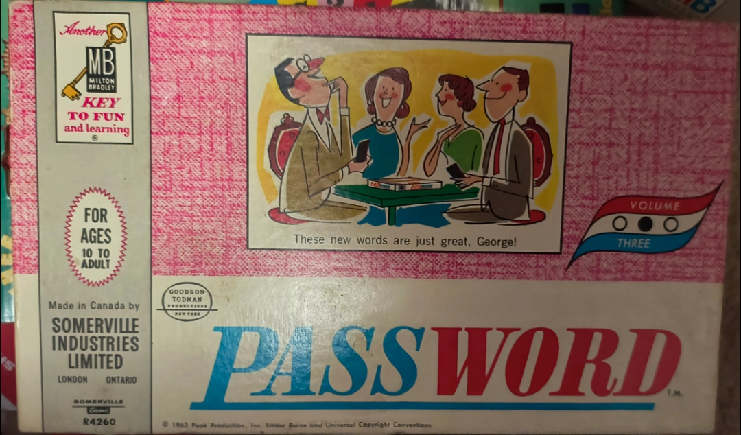 Selling a vintage Milton Bradley Password game, Volume Three! This classic game is made in Canada by Somerville Industries Limited. It's suitable for ages 10 to adult, so it's fun for the whole family. Get ready for some wordplay and laughs!