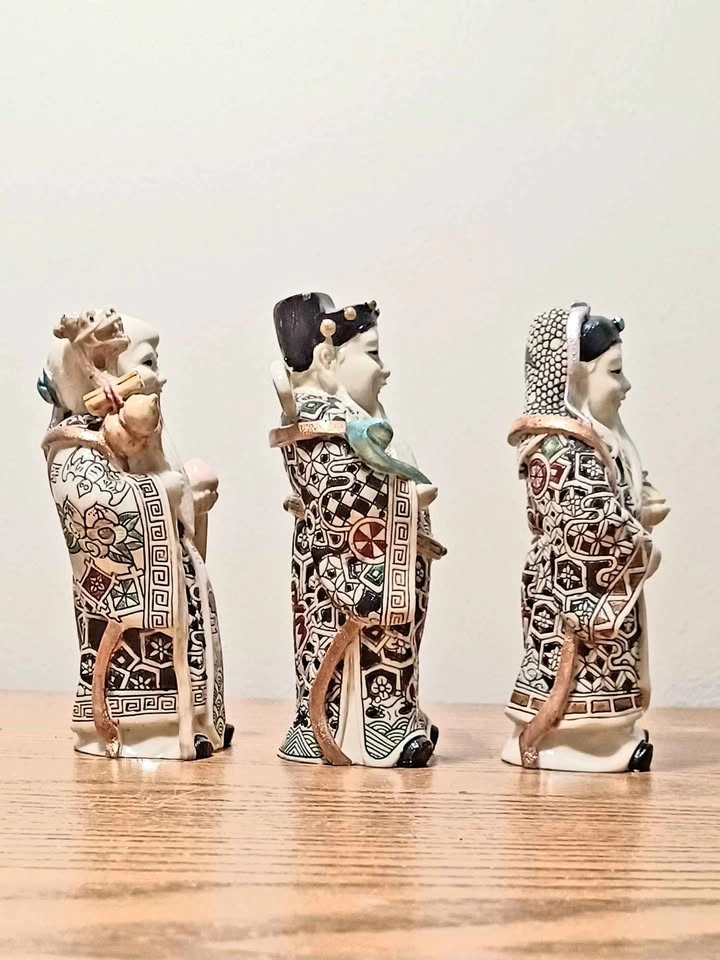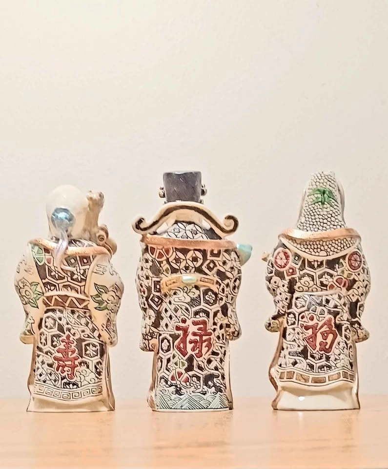 65Vintage, Hand Carved & Hand Painted Stamped, Chinese Art , Household The 3 Emperors Set . Mug For Size Reference Excellent Condition Please check out my other rare items!