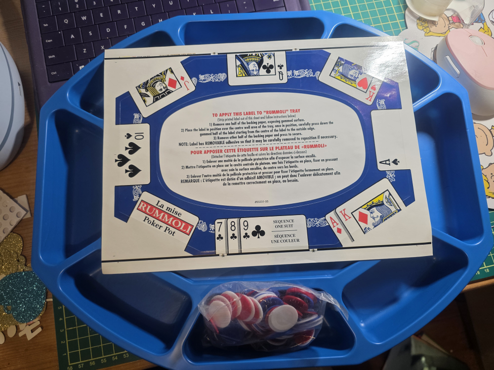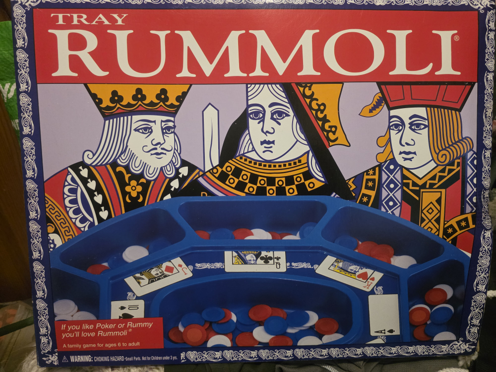 Rummoli game set, complete with the playing tray! It's a fun family game for ages 6 to adult. If you like Poker or Rummy, you'll love Rummoli